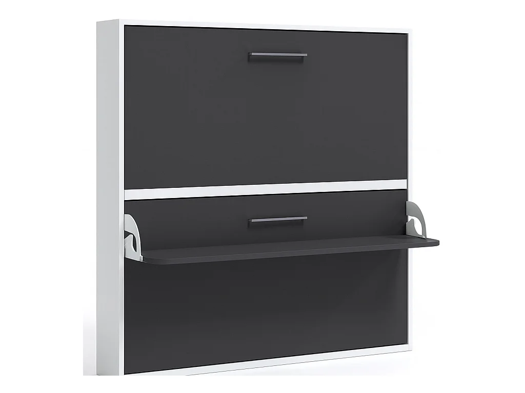 Lit escamotable horizontal superposé 90x200 STUDIO-2 matelas-Encadrement Blanc-Façade Anthracite
