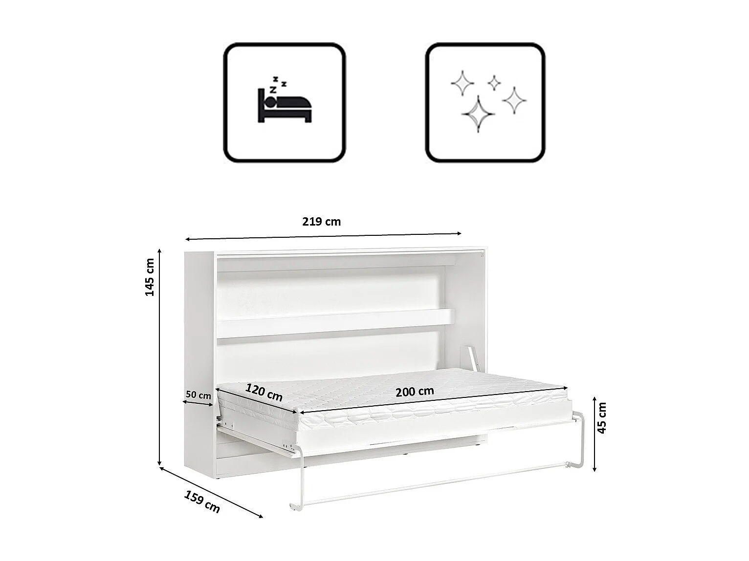 Lit escamotable Perfect 120x200 horizontal qui allie design et fonctionnalité avec matelas Blanc+Noir