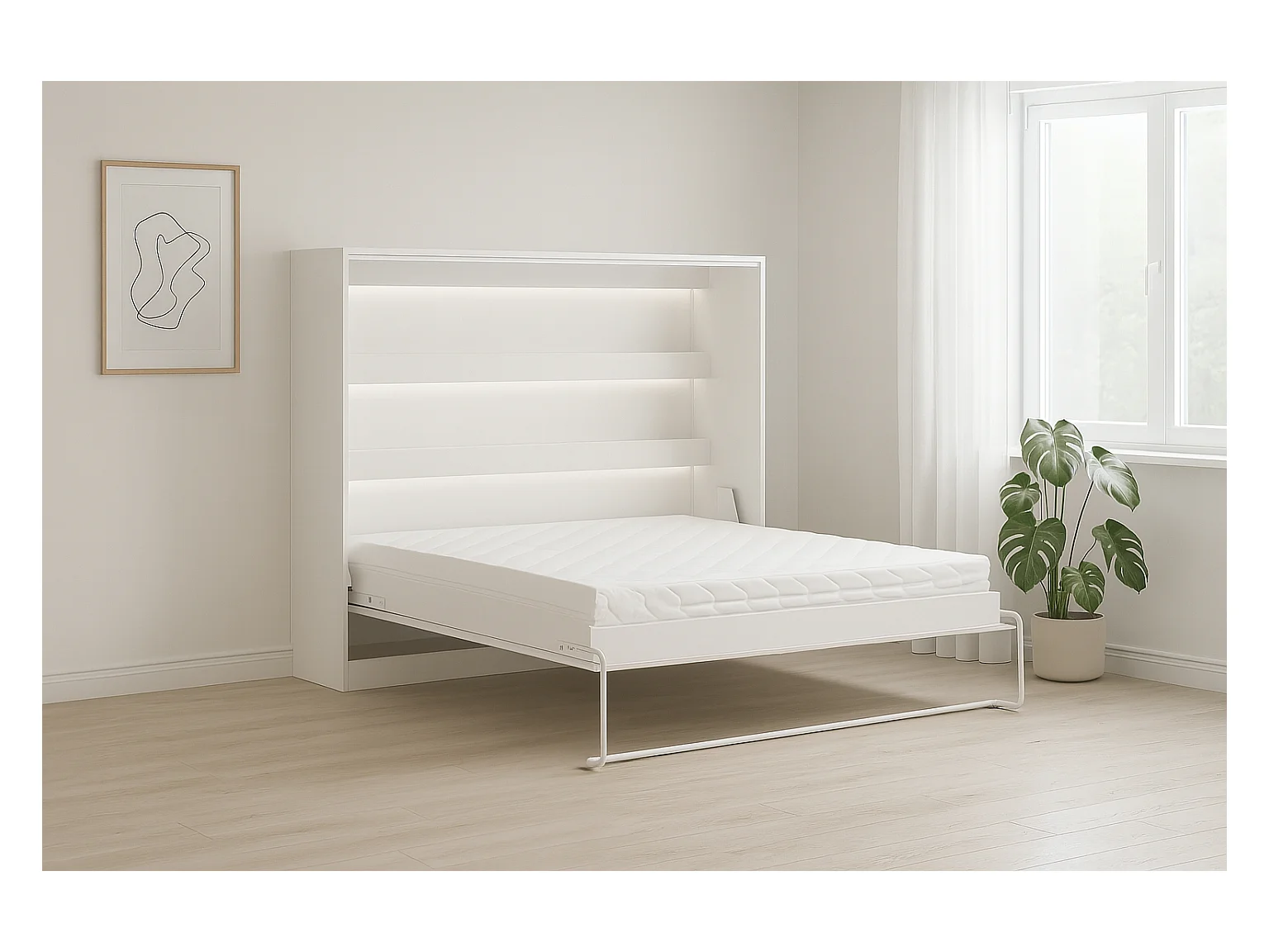 Lit armoire vertical parfait 140x200 qui allie design et fonctionnalité avec matelas blanc