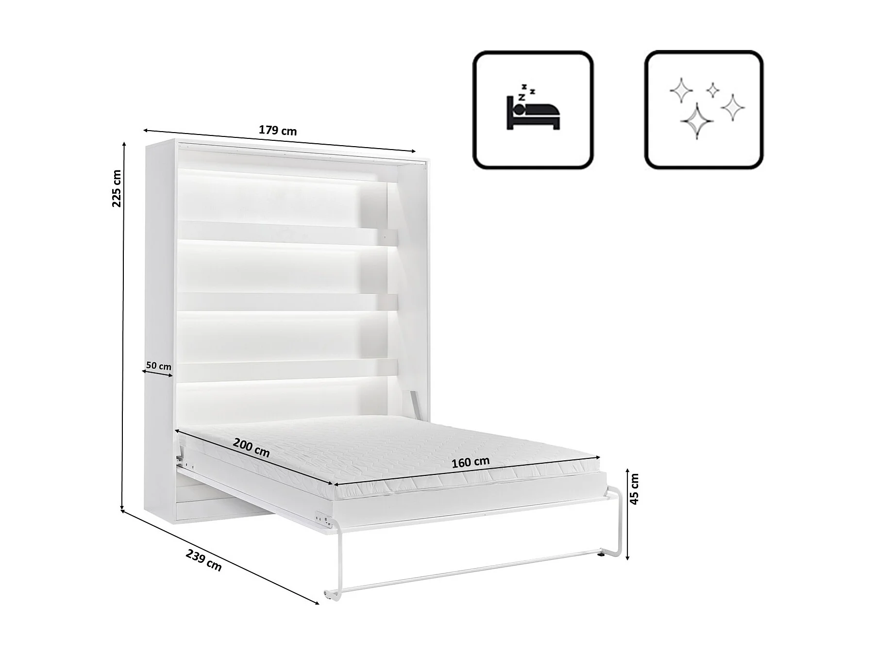 Lit escamotable Perfect 160x200 un vertical qui allie design et fonctionnalité Blanc