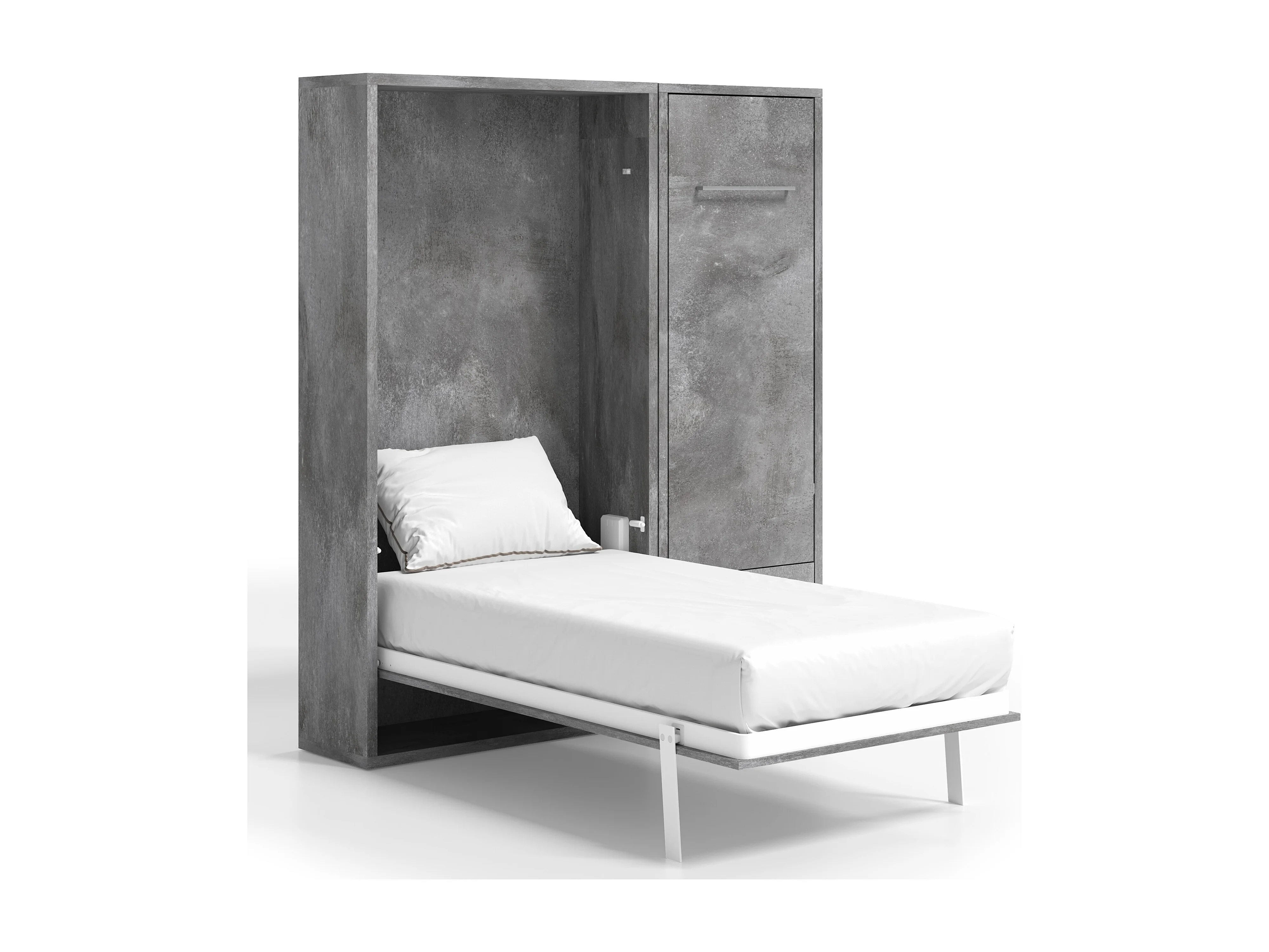 Lit escamotable vertical 140x190 avec armoire et bureau Kampo-Avec matelas-Cadre Cambrian-Façade Cambrian