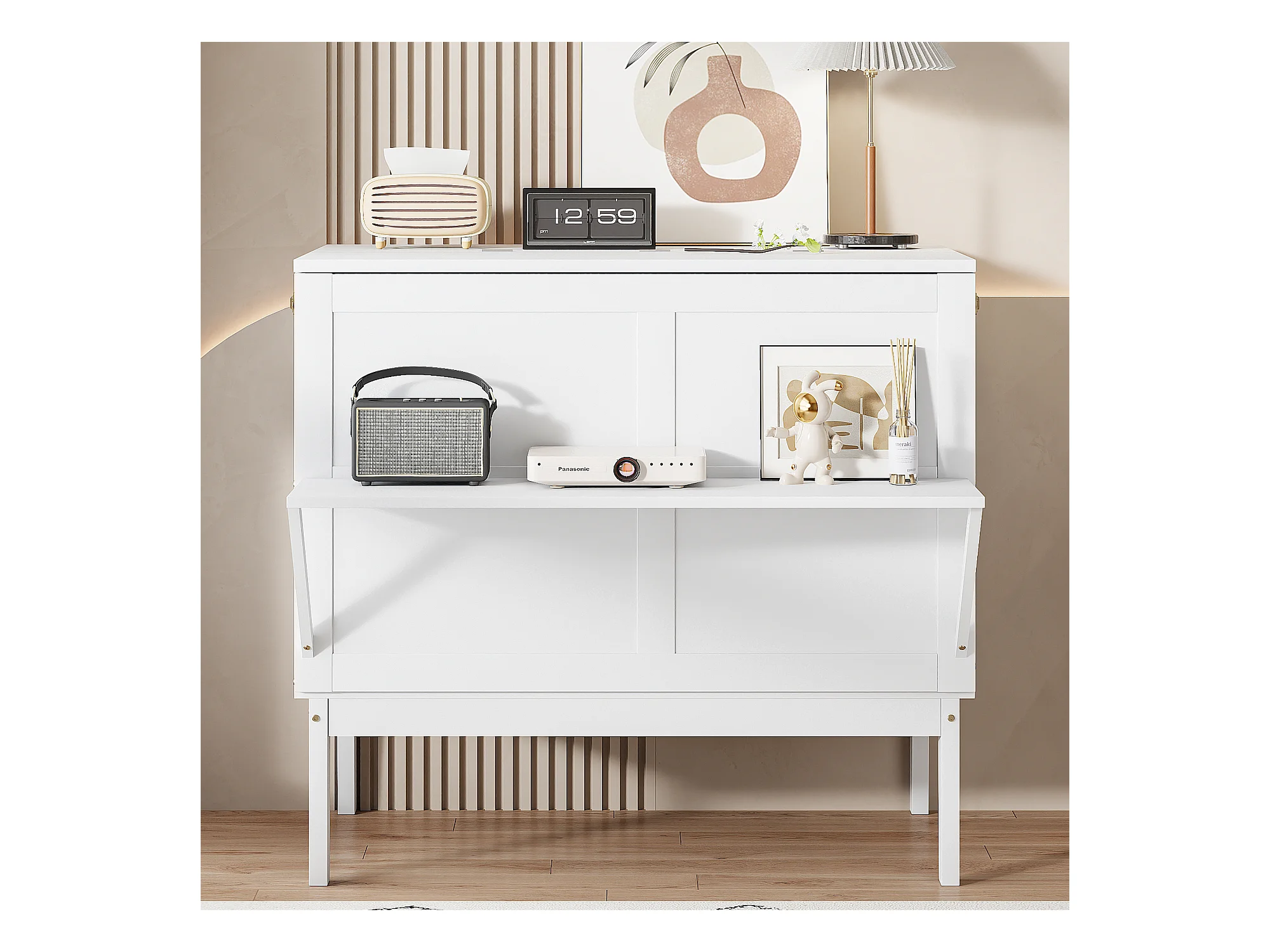 Lit escamotable vertical 90x200cm avec sommier à lattes, lit mural pliant, lit pour jeunes, bois blanc (205x96x101cm)