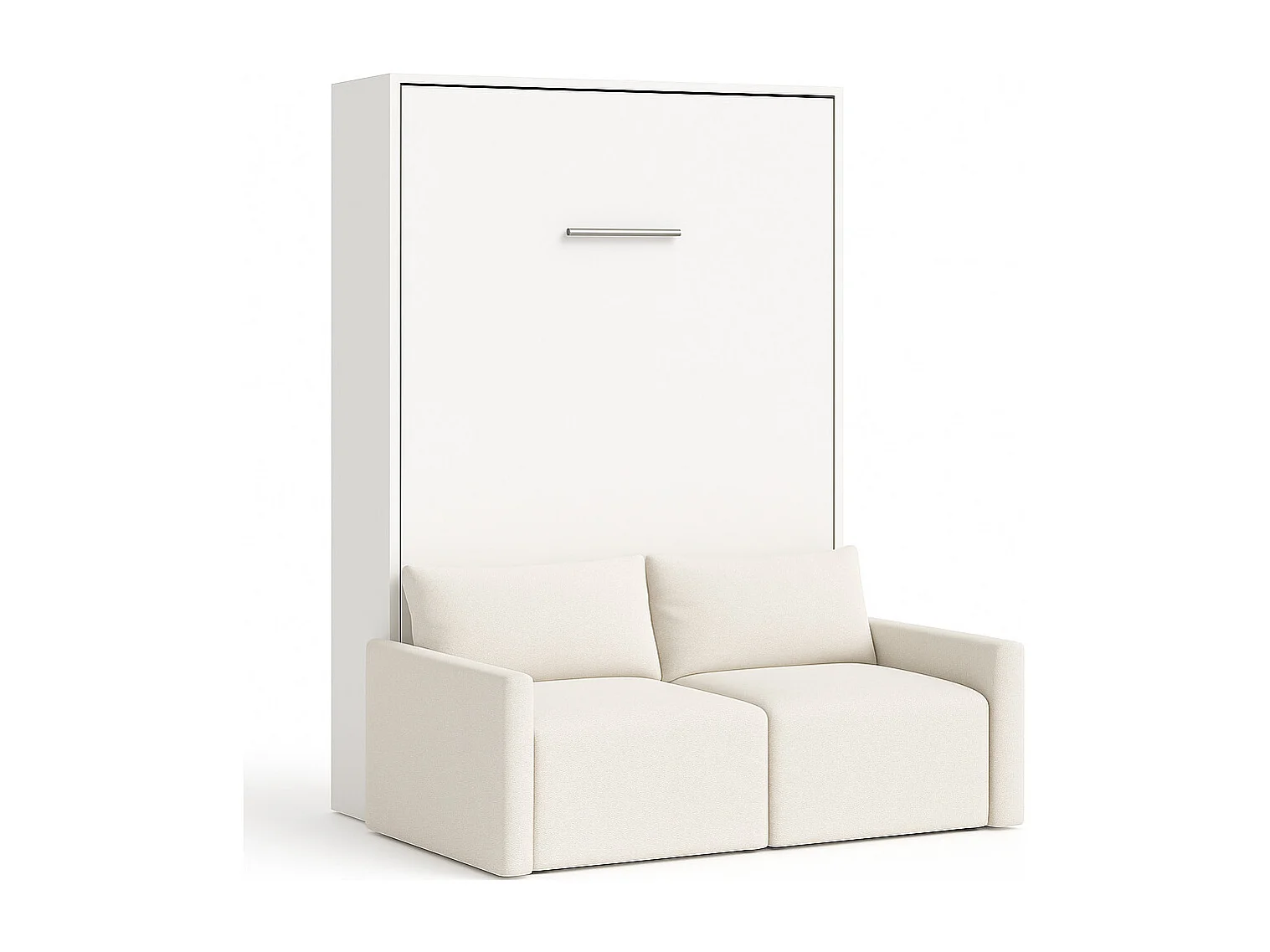 Lit escamotable vertical avec canapé tissu VALENCIA-160x200-Canapé Blanc-Structure Blanche
