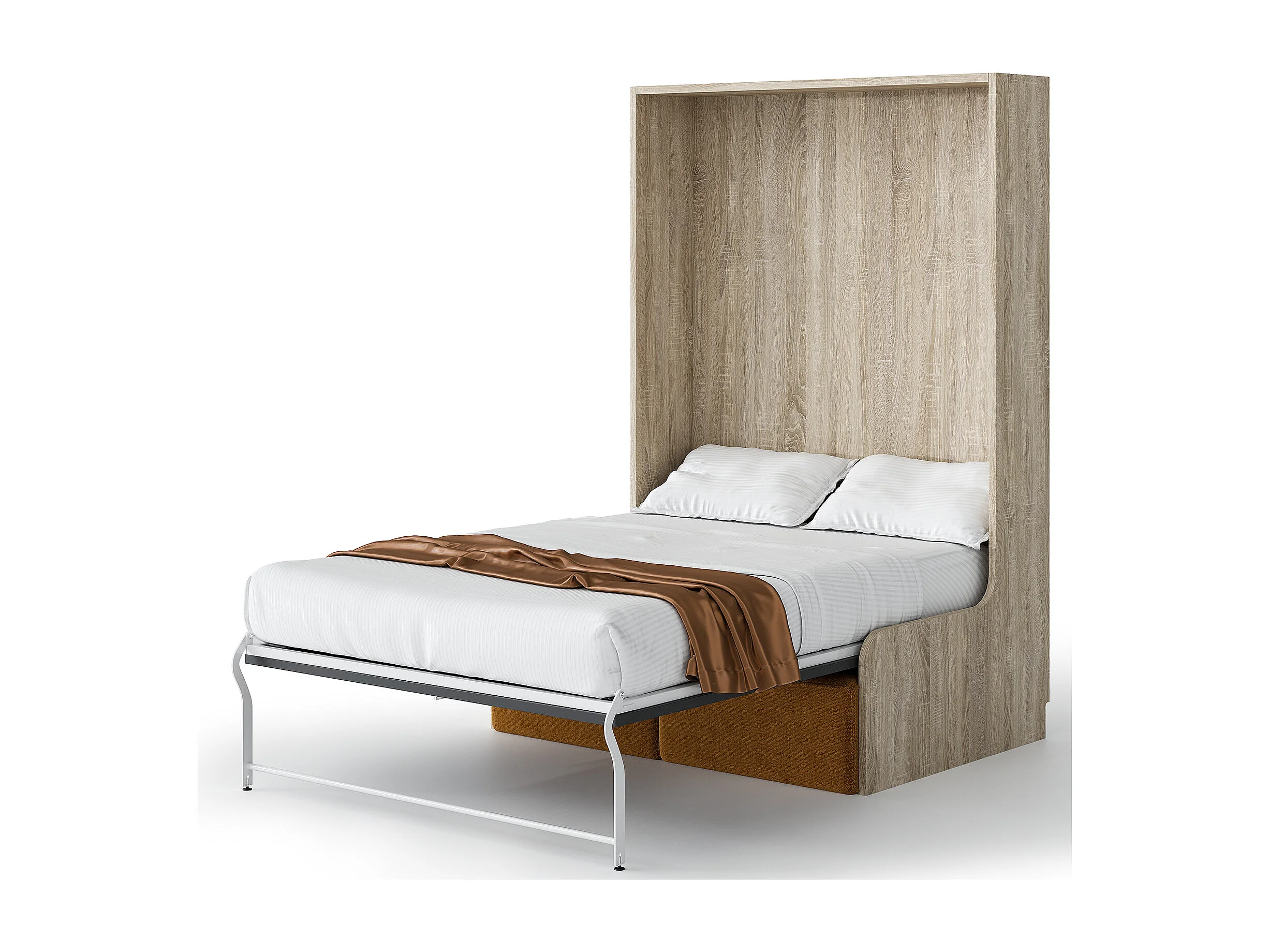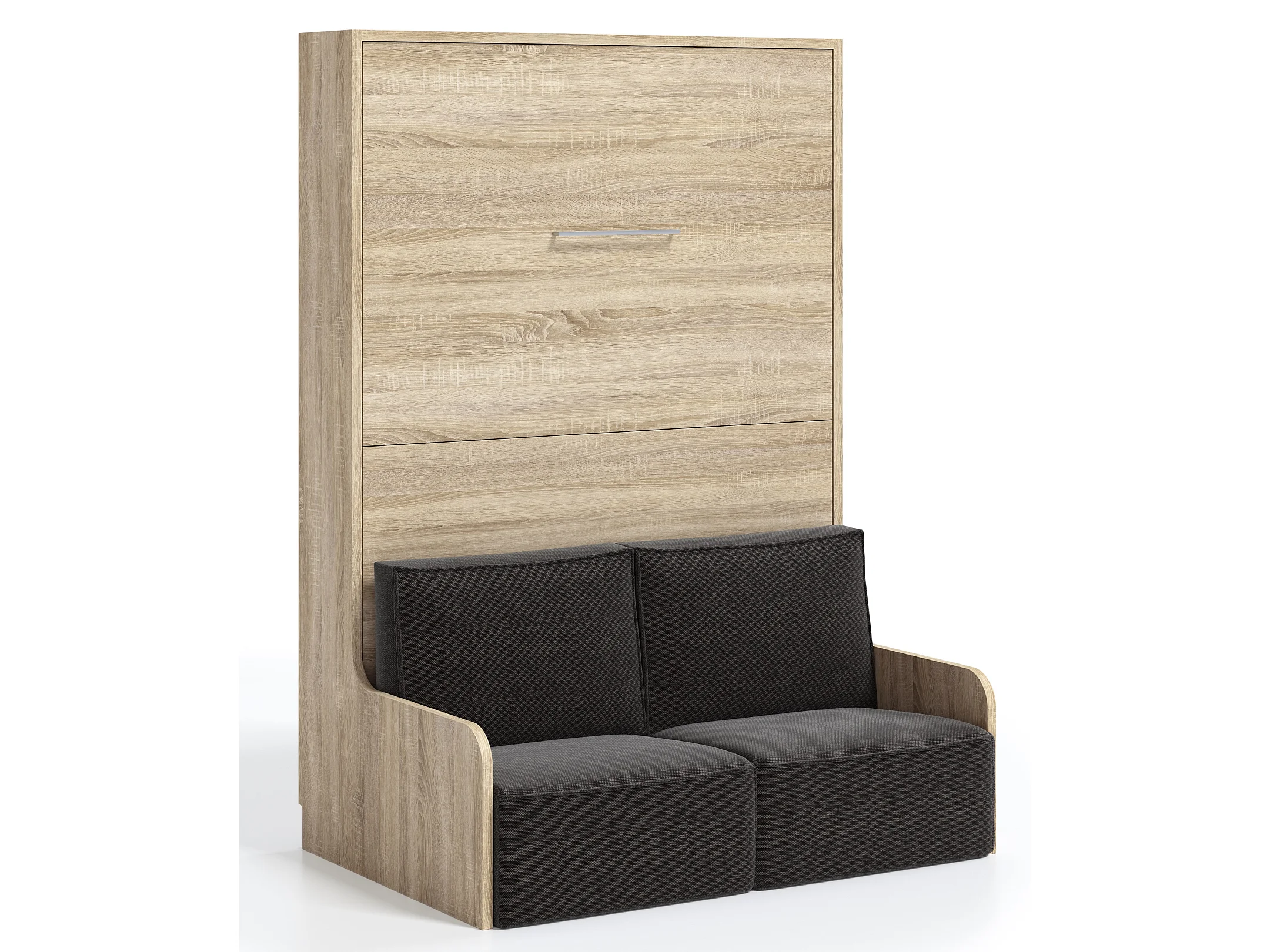 Lit escamotable vertical Kora 140x190-Avec matelas-Cadre Gris ciment-Façade Gris ciment-Canapé Gris clair