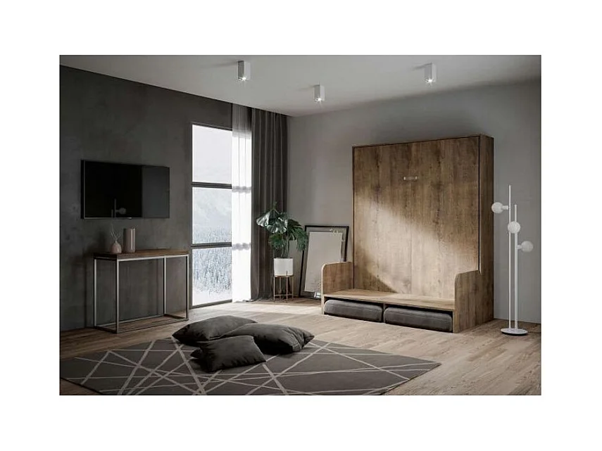Armoire lit 120x190 avec canapé et colonne de rangement bois noyer Kanto-Couleur Microfibre 10