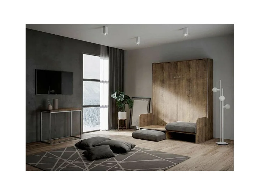 Armoire lit 120x190 avec canapé et meuble haut bois noyer Kanto-Couleur Microfibre 10
