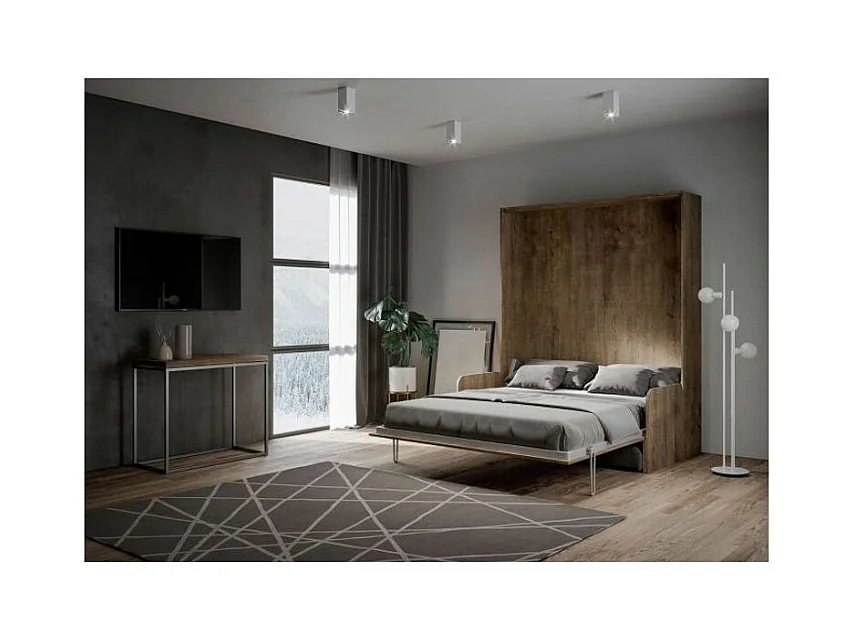 Lit escamotable vertical noyer avec canapé tissu Bounto 140x190 de tissu-Couleur Microfibre 16