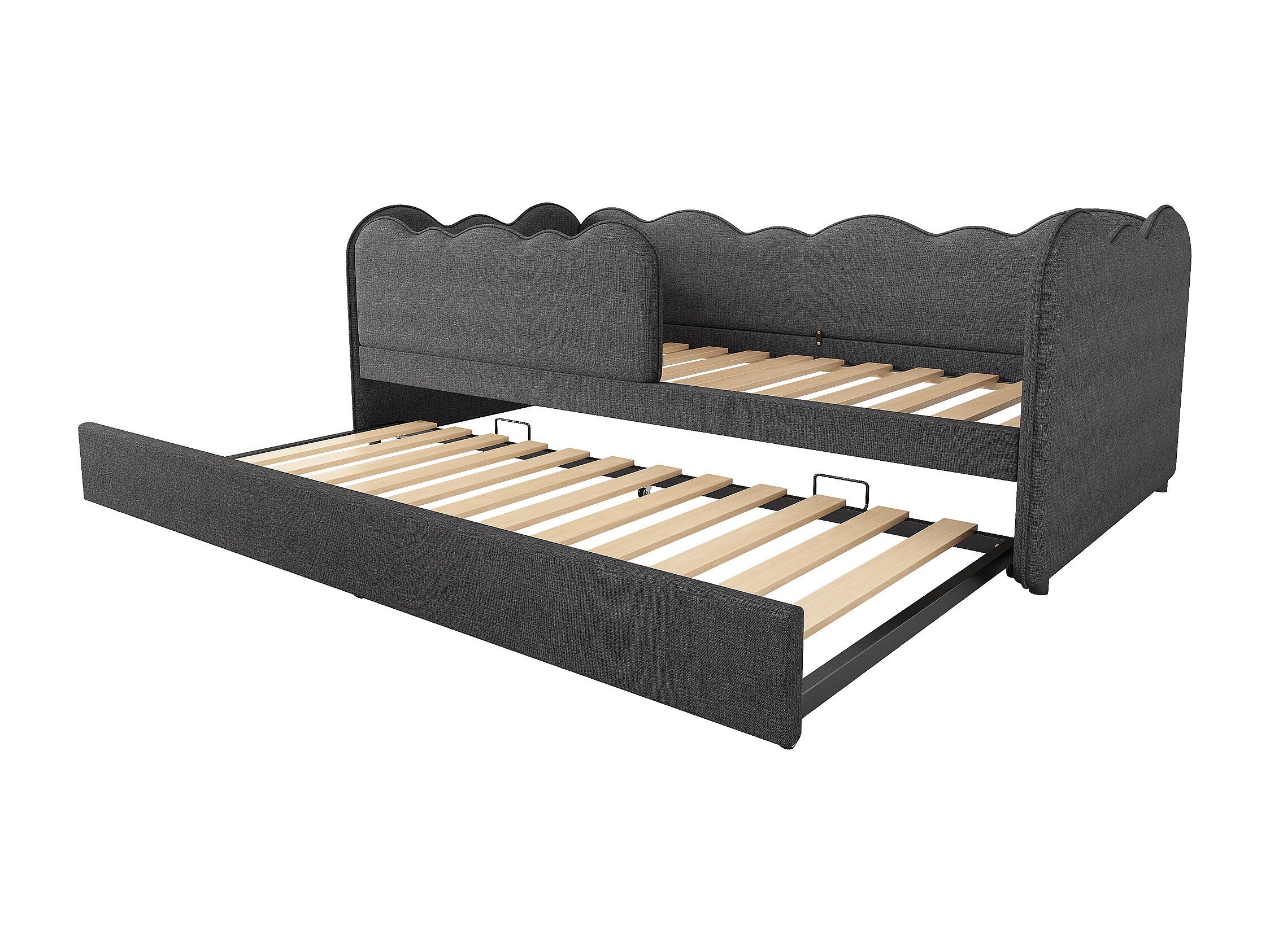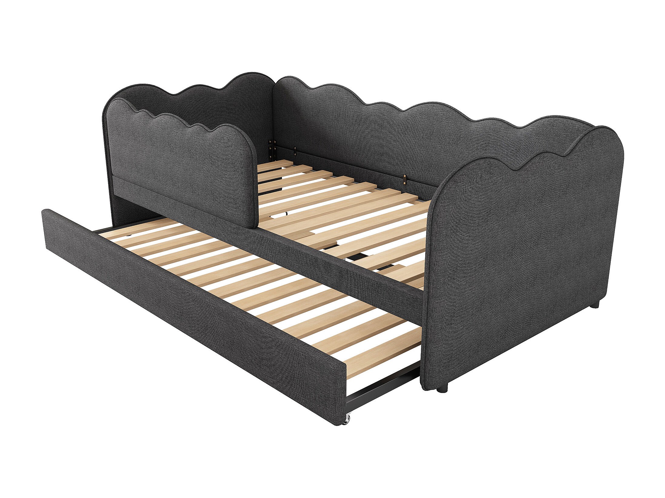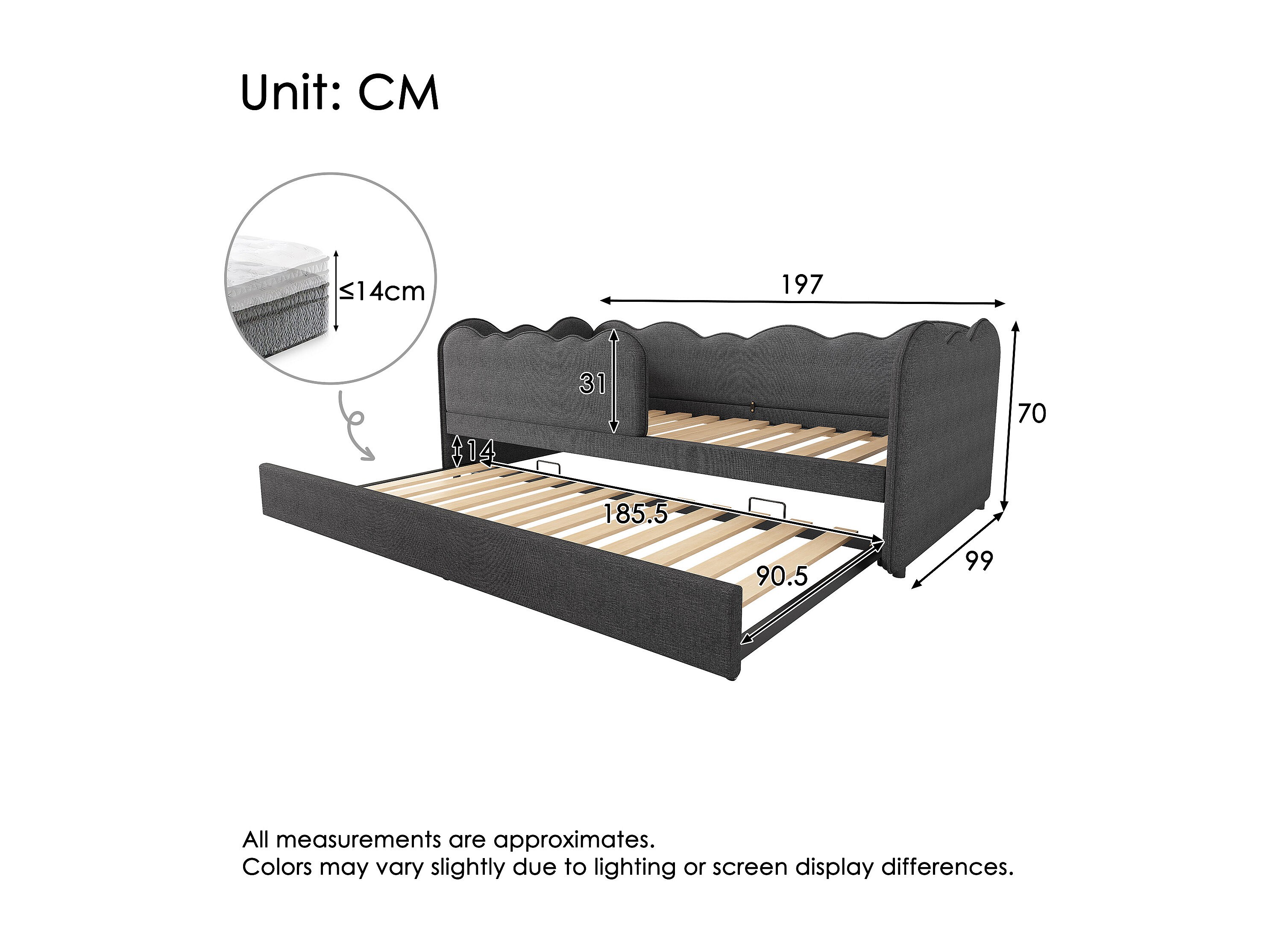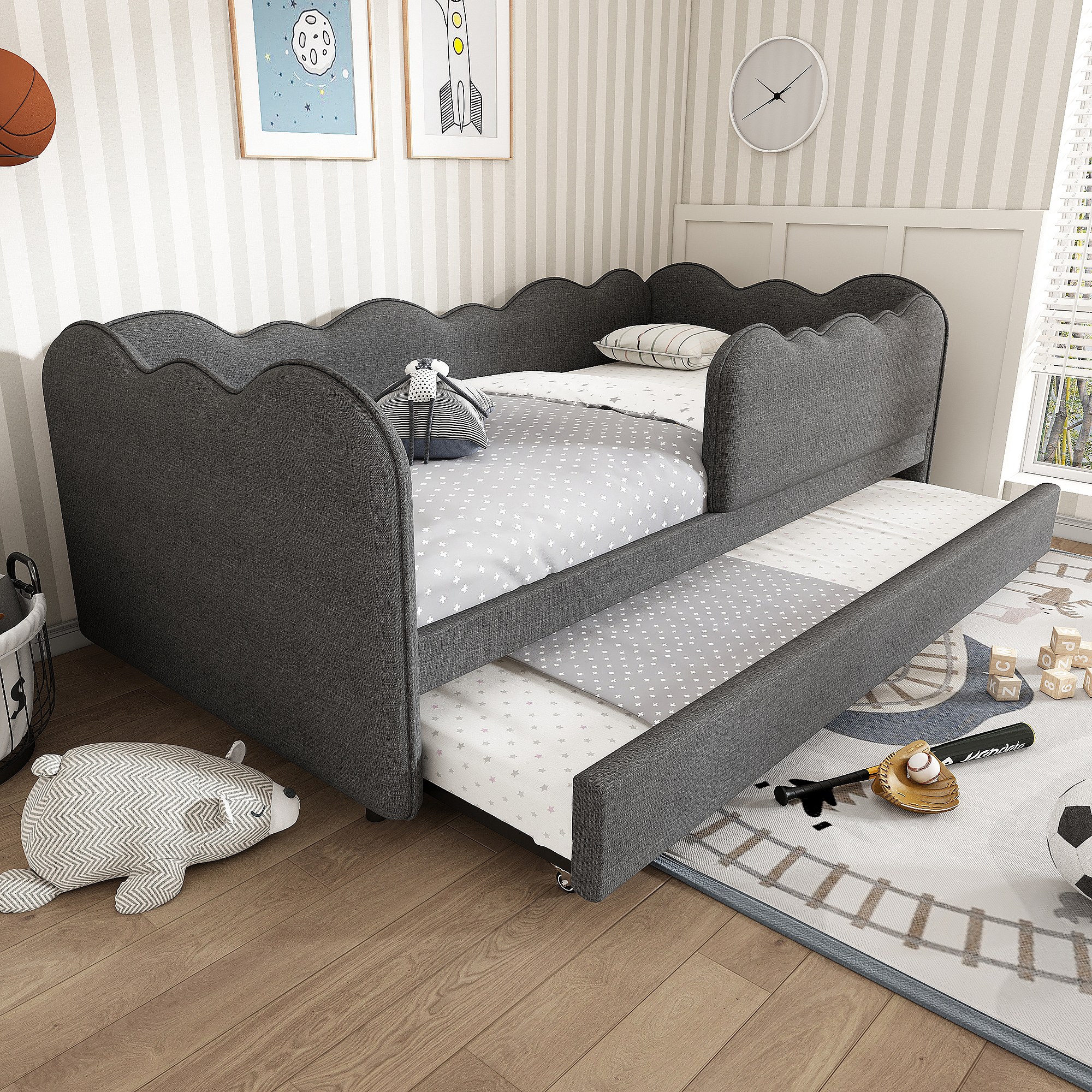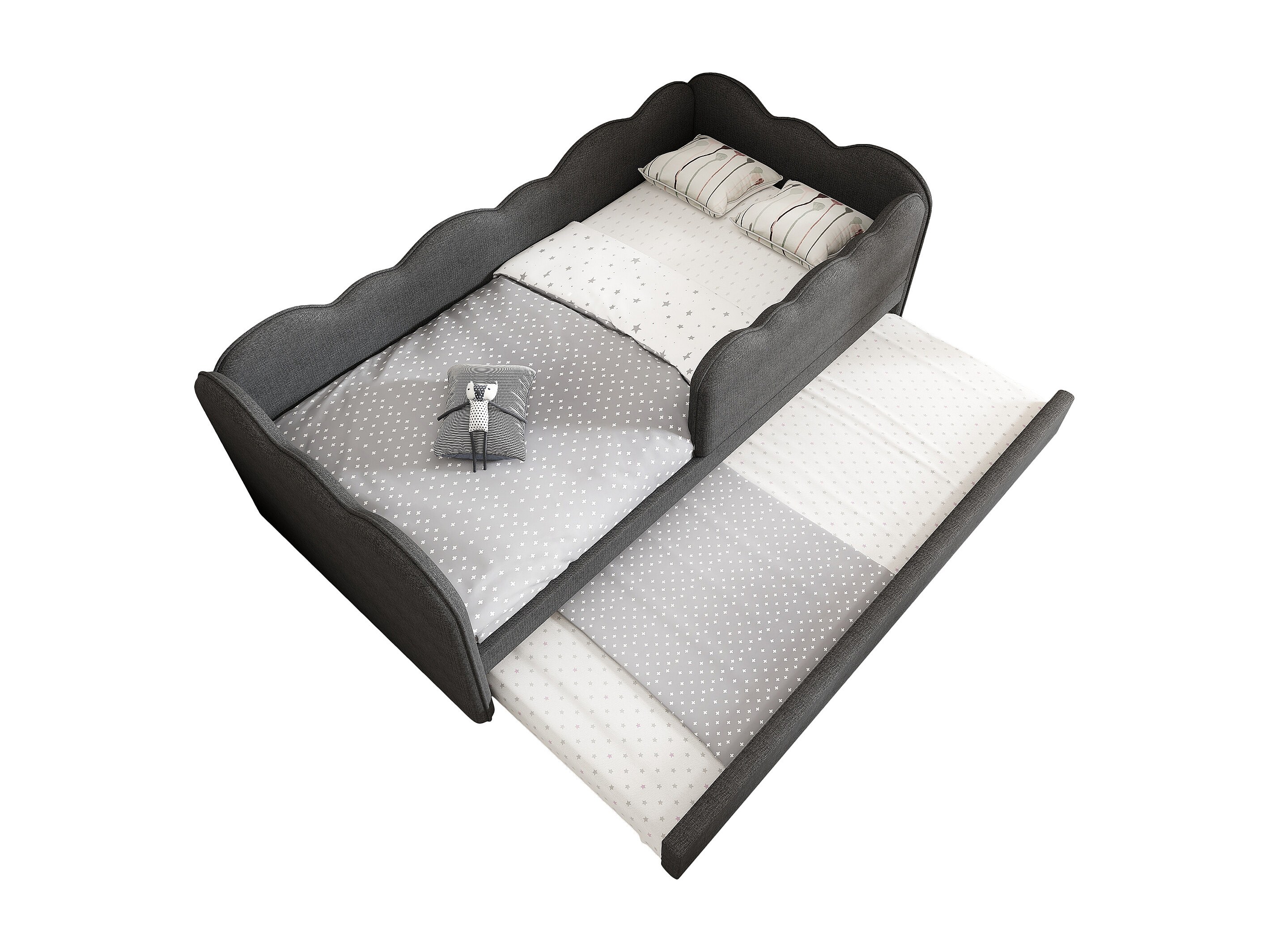 Lit gigogne 90 x 190 cm - Lit enfant avec sommier à lattes et parc - lin gris - matelas non inclus