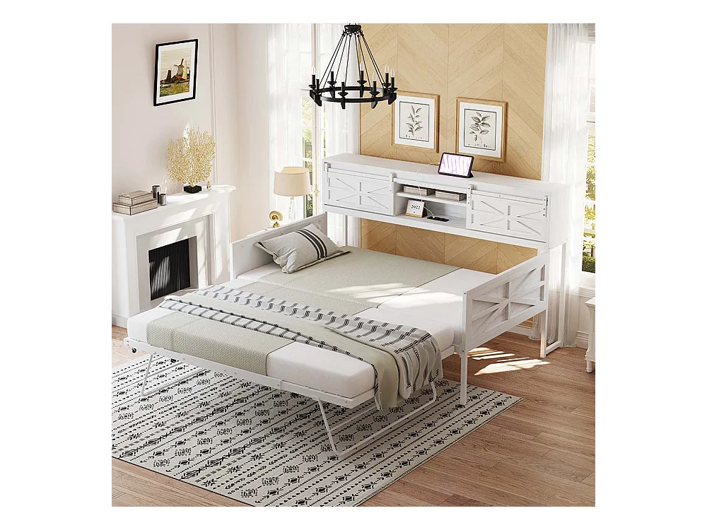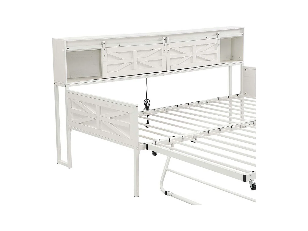 Lit gigogne 90 x 200 cm, avec compartiments de rangement et prise multifonction,blanc