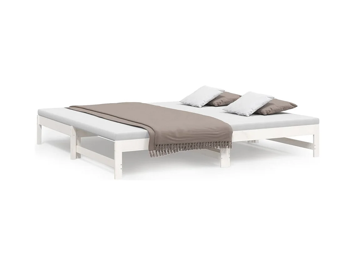 Lit gigogne Blanc 2x(90x200) cm Bois de pin massif HOQW34635