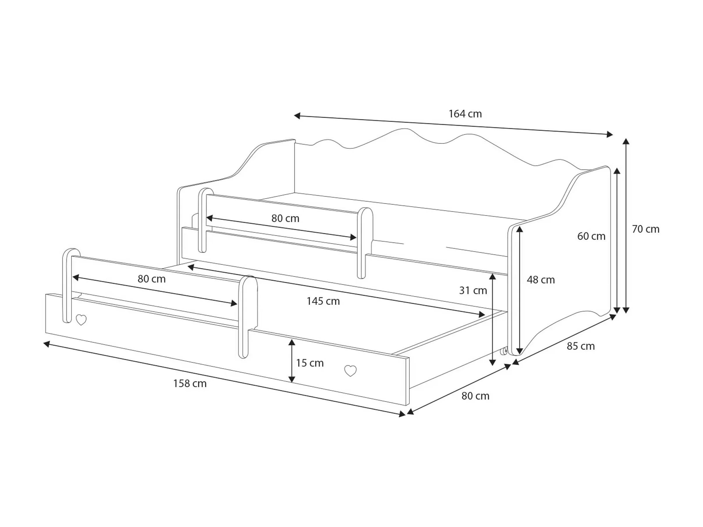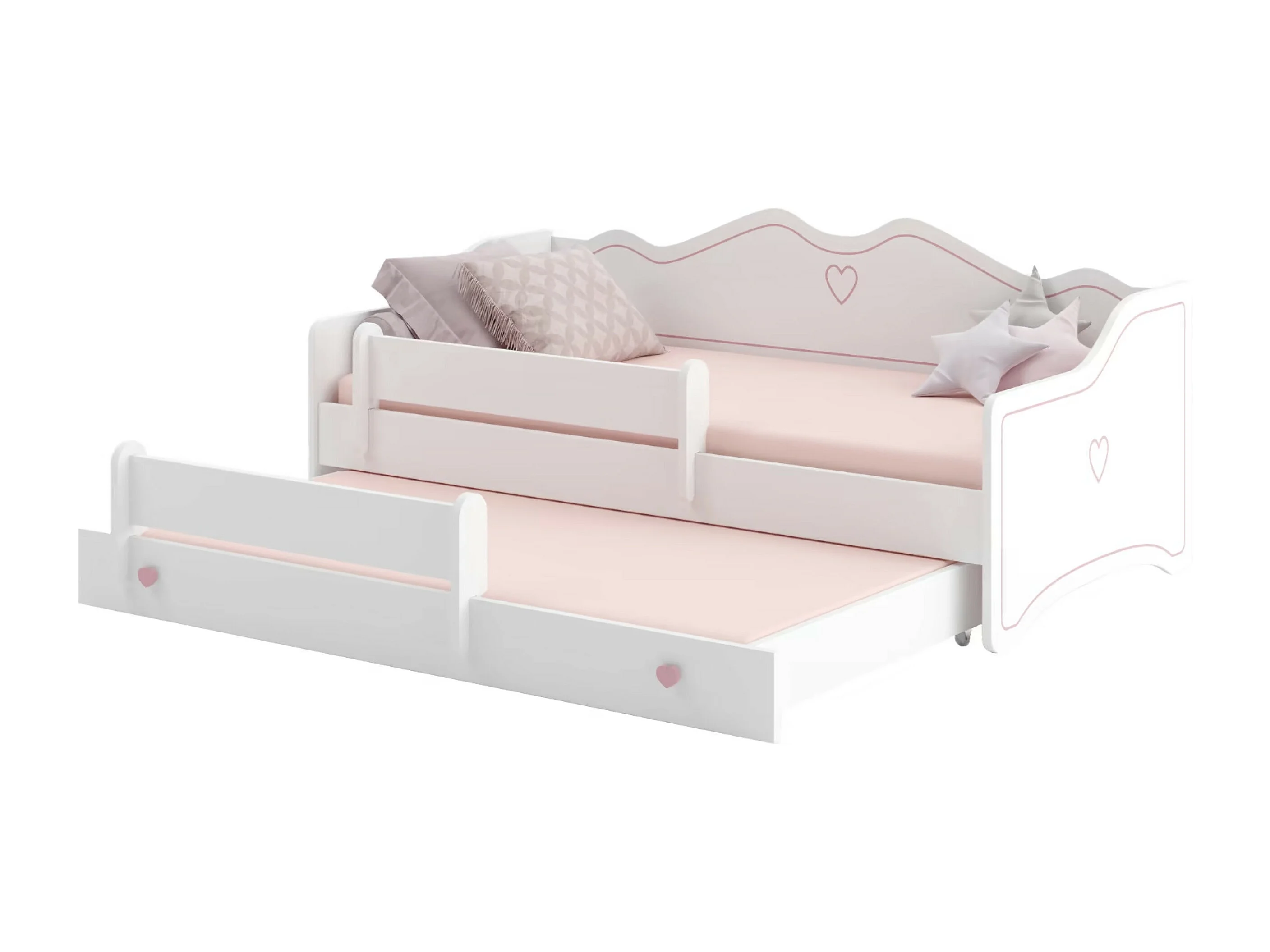 Lit gigogne enfant bois blanc 80x160 petit coeur rose Baky