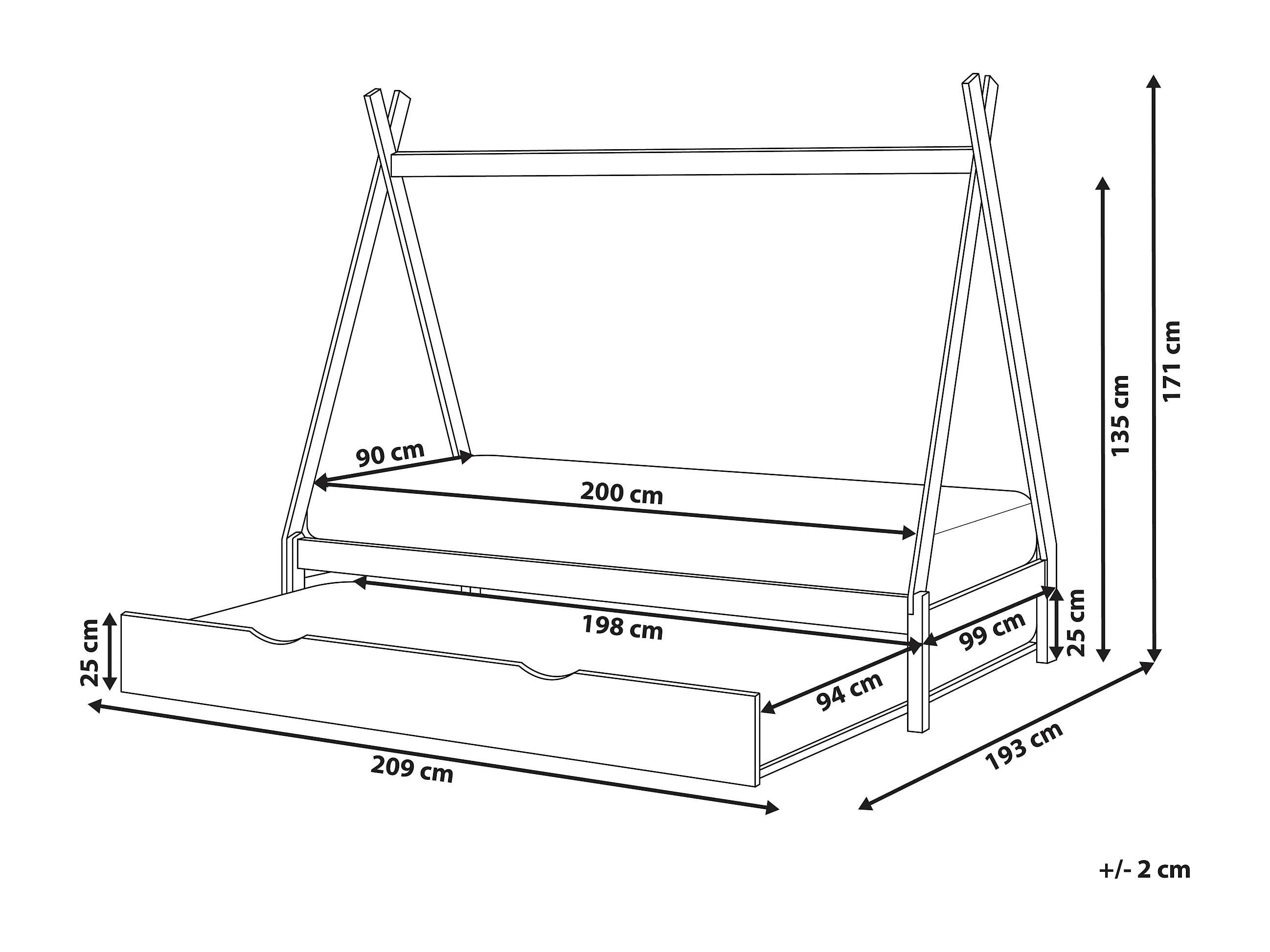 Lit gigogne enfant Bois de pin TALMONTIERS 90 x 200 cm Gris