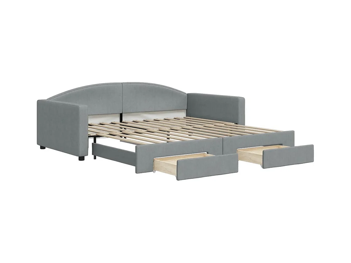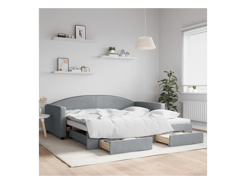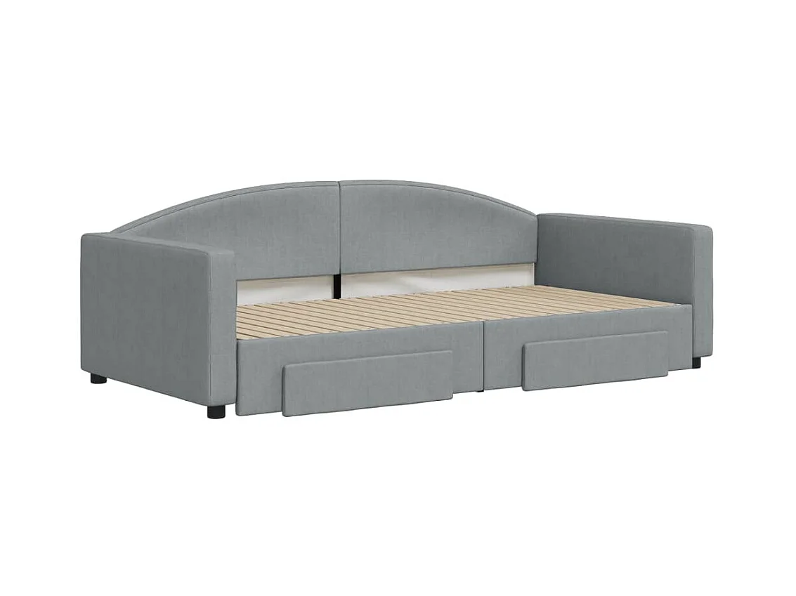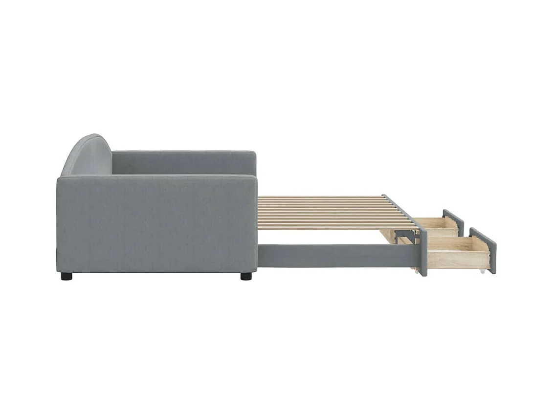 Lit de jour avec gigogne et tiroirs gris clair 100x200 cm tissu