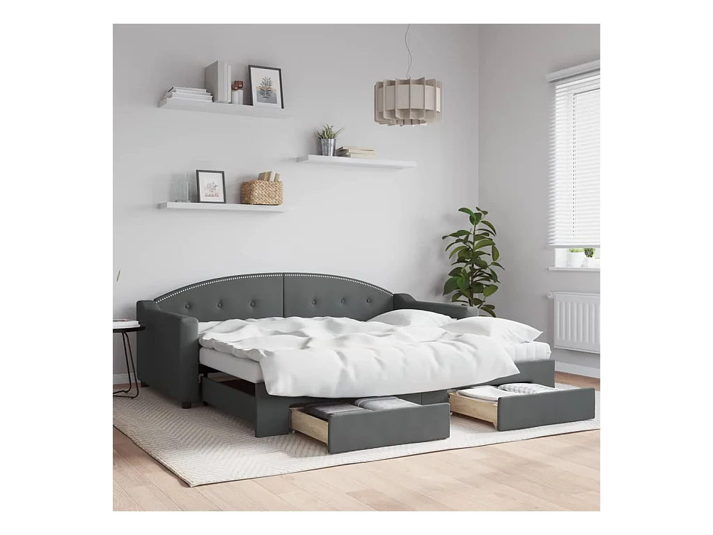 Lit gigogne et tiroirs gris foncé 90x190 cm tissu WVGQ4602