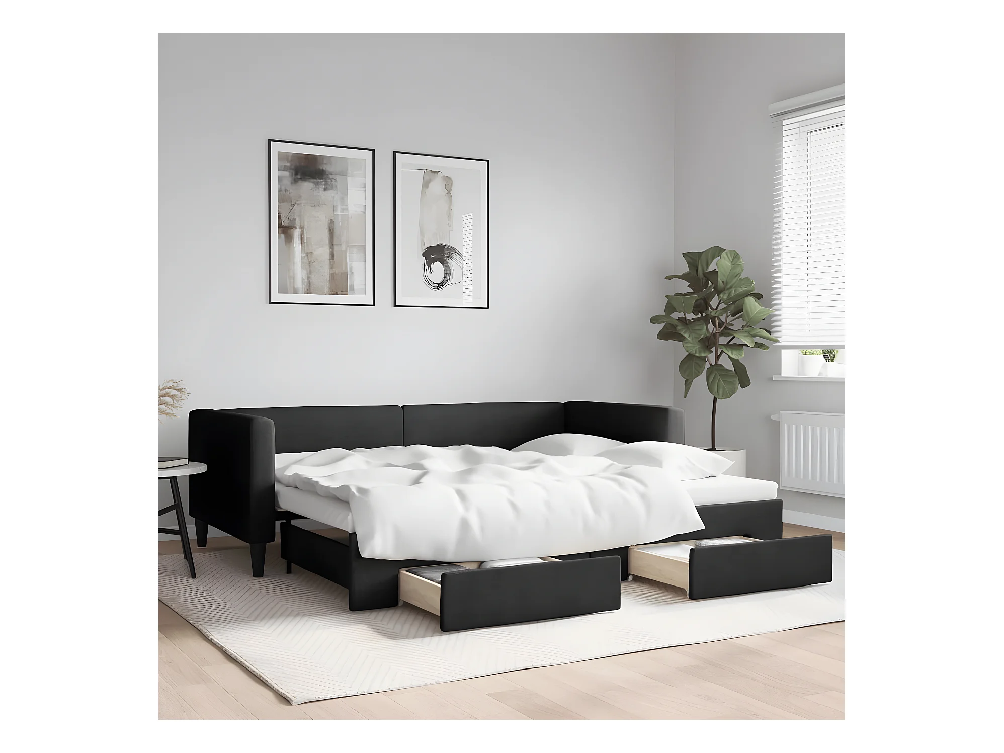 Lit gigogne et tiroirs noir 80x200 cm velours ASW18275