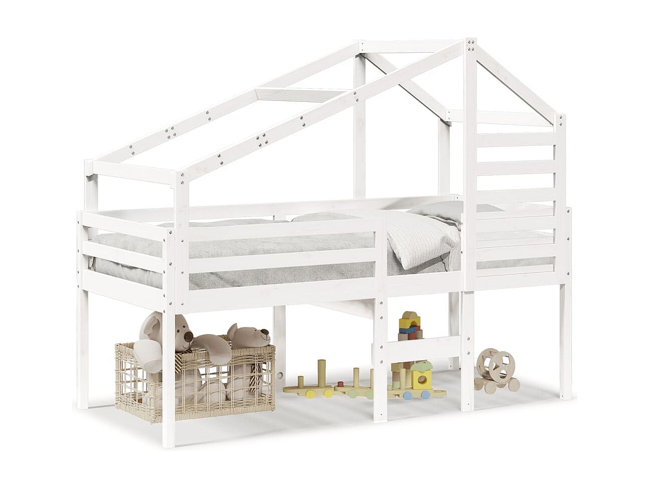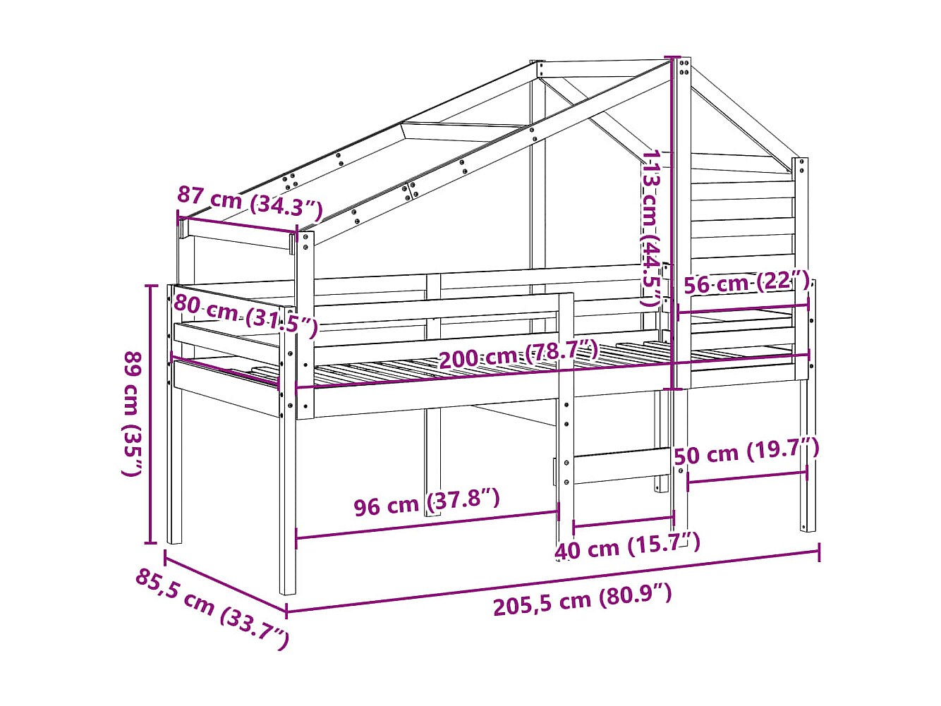 Lit simple avec toit blanc 80x200 cm bois massif de pin FR38709