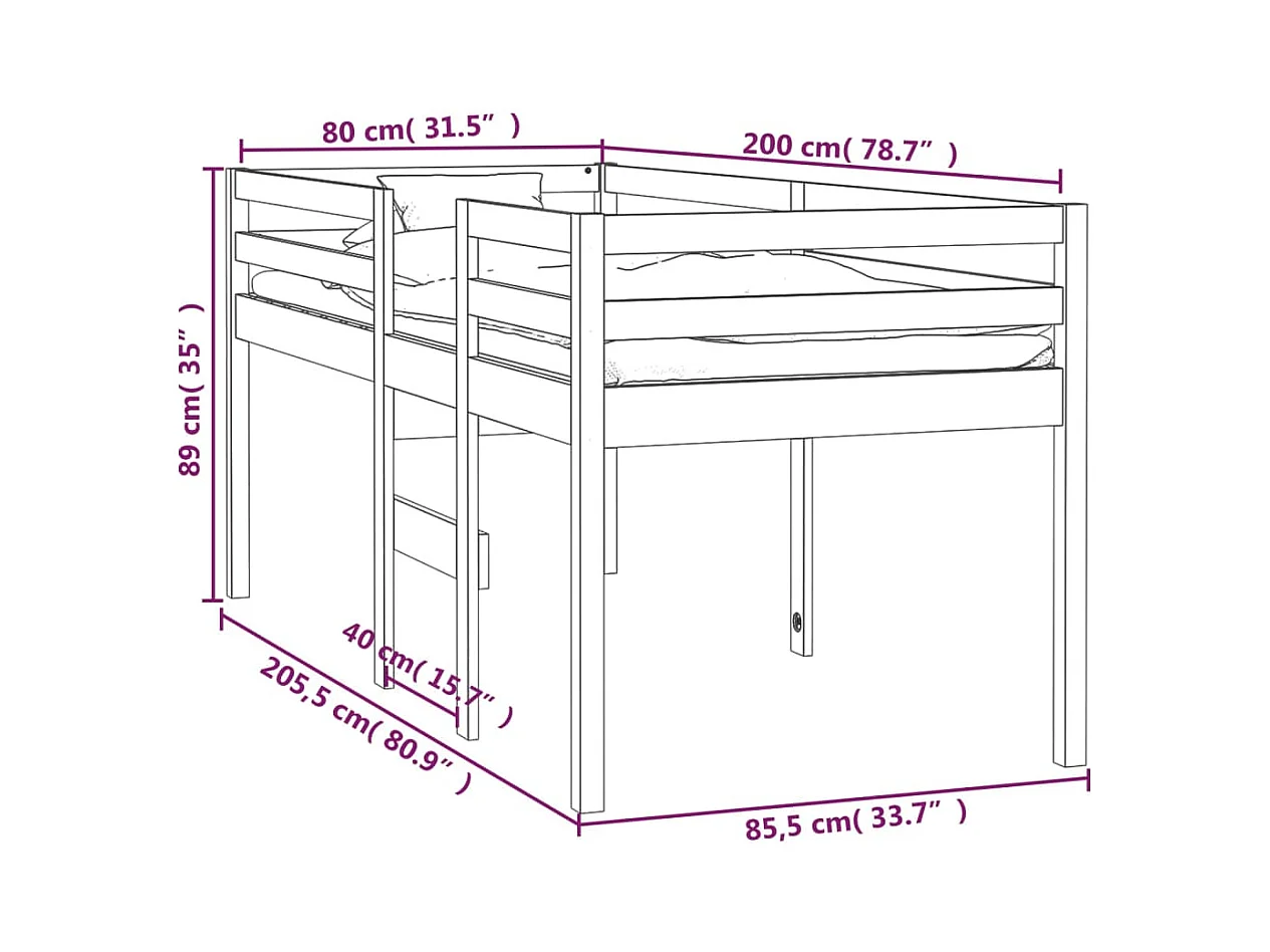 Lit mezzanine pour enfants avec rideaux sans matelas 80x200 cm
