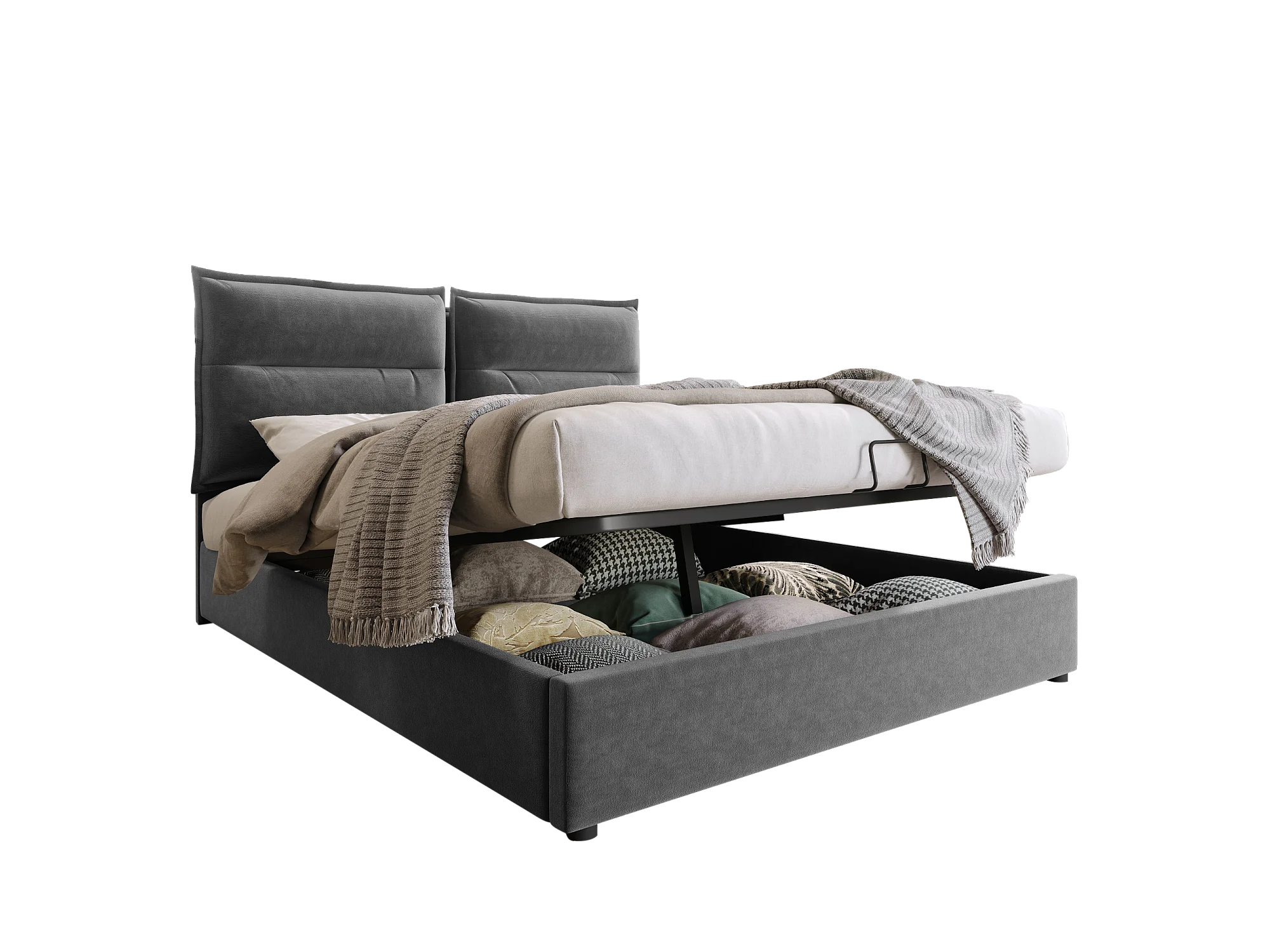 Lit hydraulique avec tête de lit réglable, 140x200 cm, lit capitonné avec 2 tiroirs de rangement, structure en métal et sommier en bois, velours gris (avec matelas)