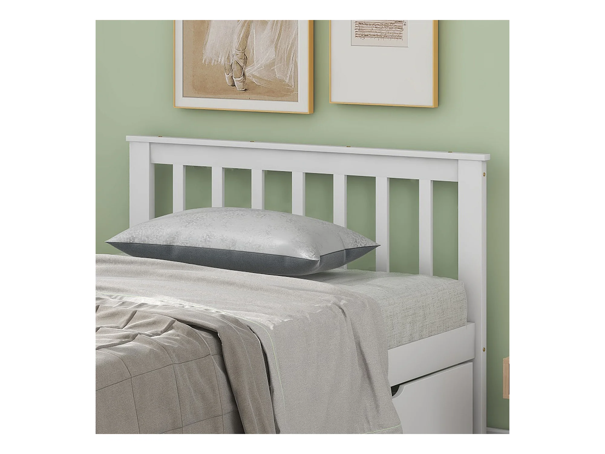 Lit simple en bois 90 x 200 cm pour jeune et adulte. avec tiroirs. structure en Pin. Blanc