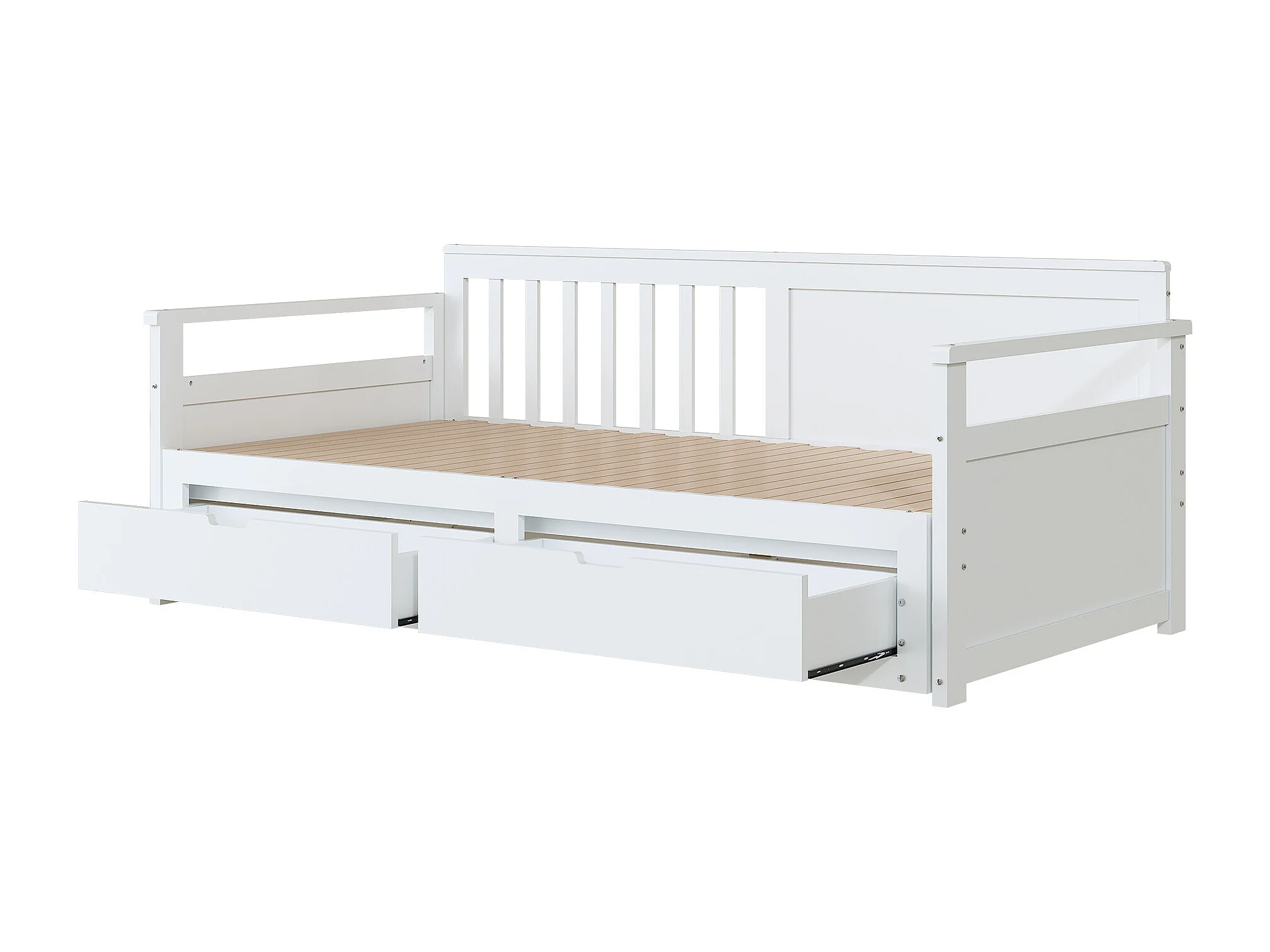 Lit jour/Canapé-lit multifonction 2-en-1 90(180)x190 cm en pin blanc avec tiroirs et lit gigogne – pratique et gain de place