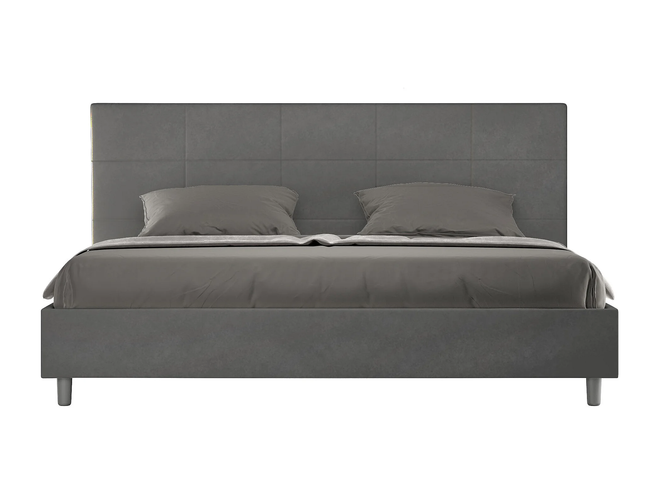 Lit king size avec sommier rembourré 180x200 microfibre gris Mika