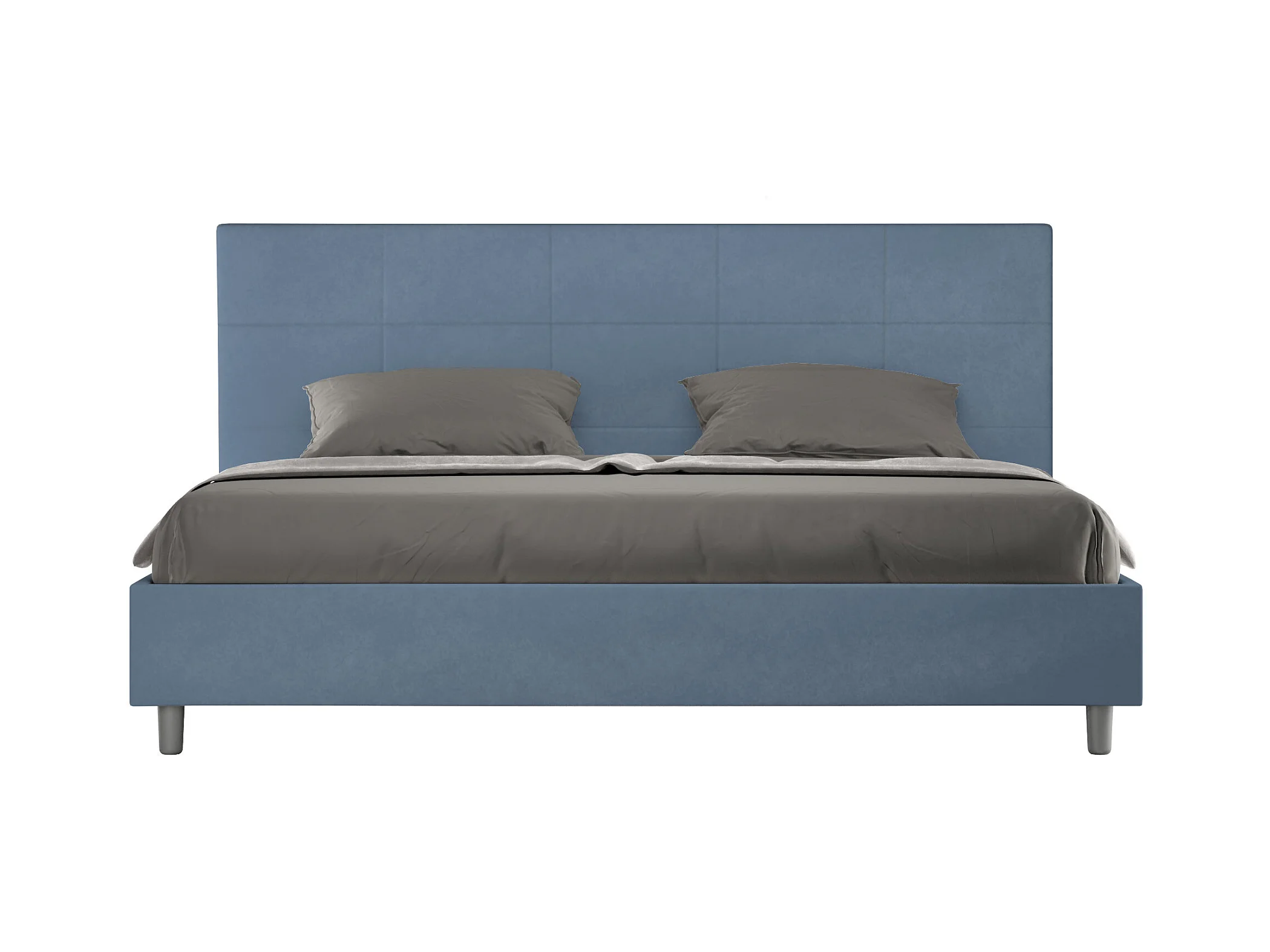 Lit avec sommier rembourré 180x190 microfibre bleu Antea