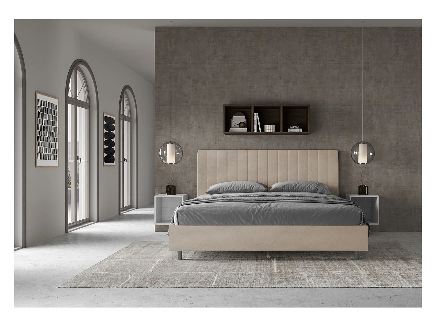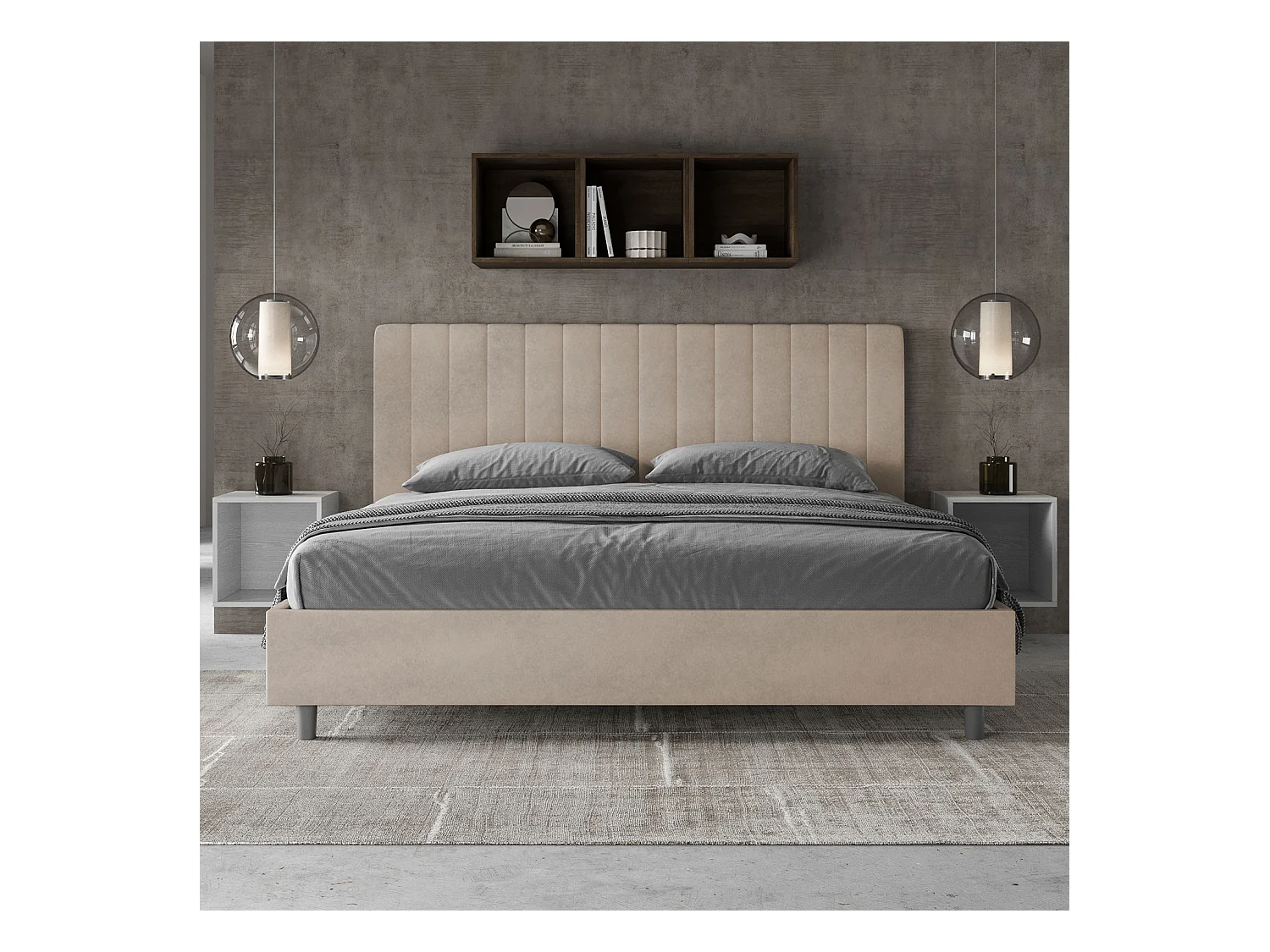 Lit king size avec sommier rembourré 200x210 microfibre sable Agueda