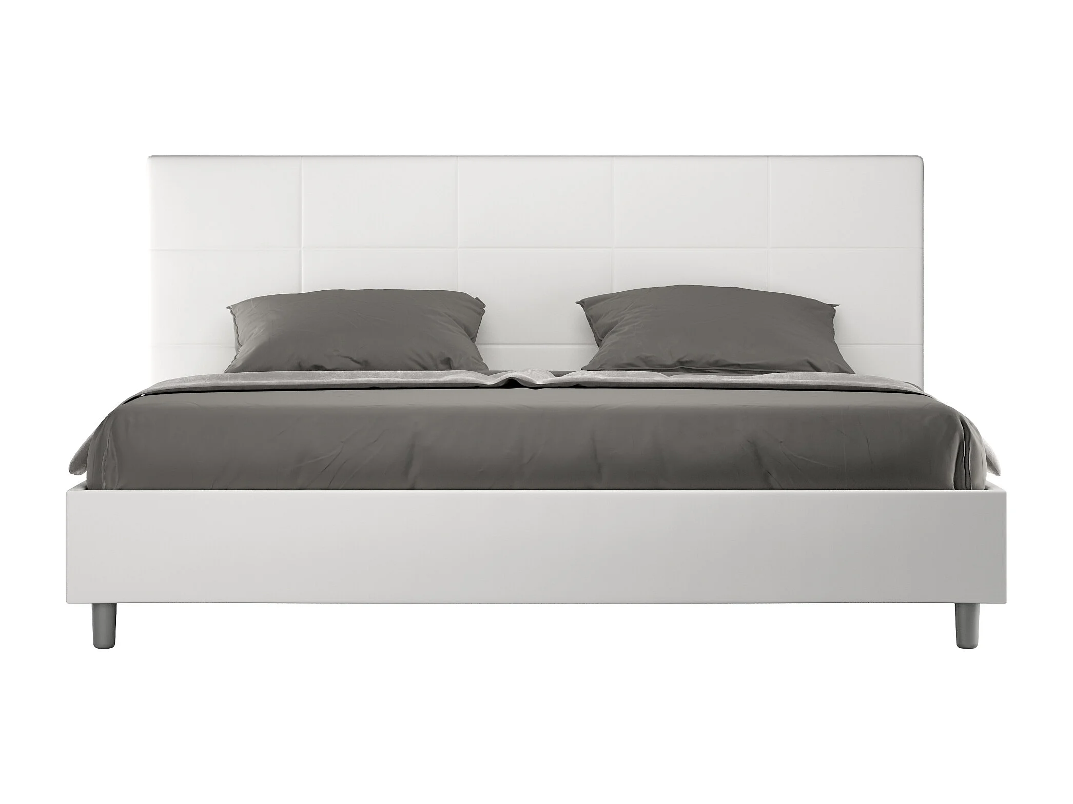 Lit king size avec sommier rembourré 200x210 similicuir blanc Mika