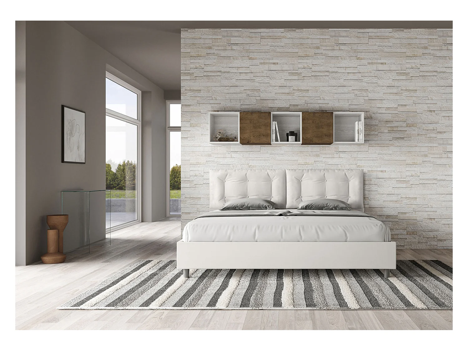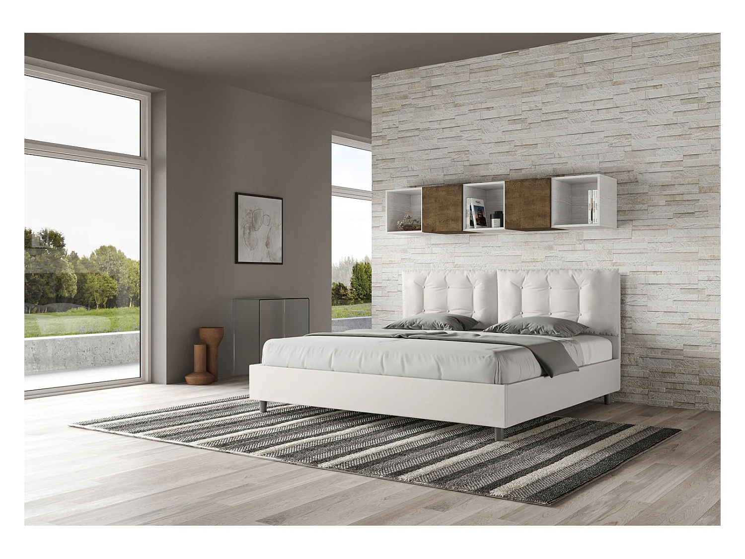 Lit king size coffre rembourré 200x200 similicuir blanc Annalisa Large