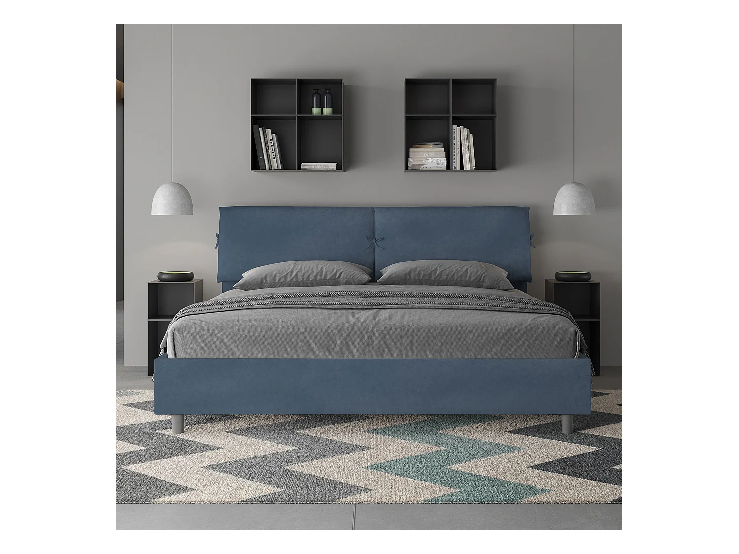 Lit sans sommier rembourré 180x190 microfibre bleu Appia