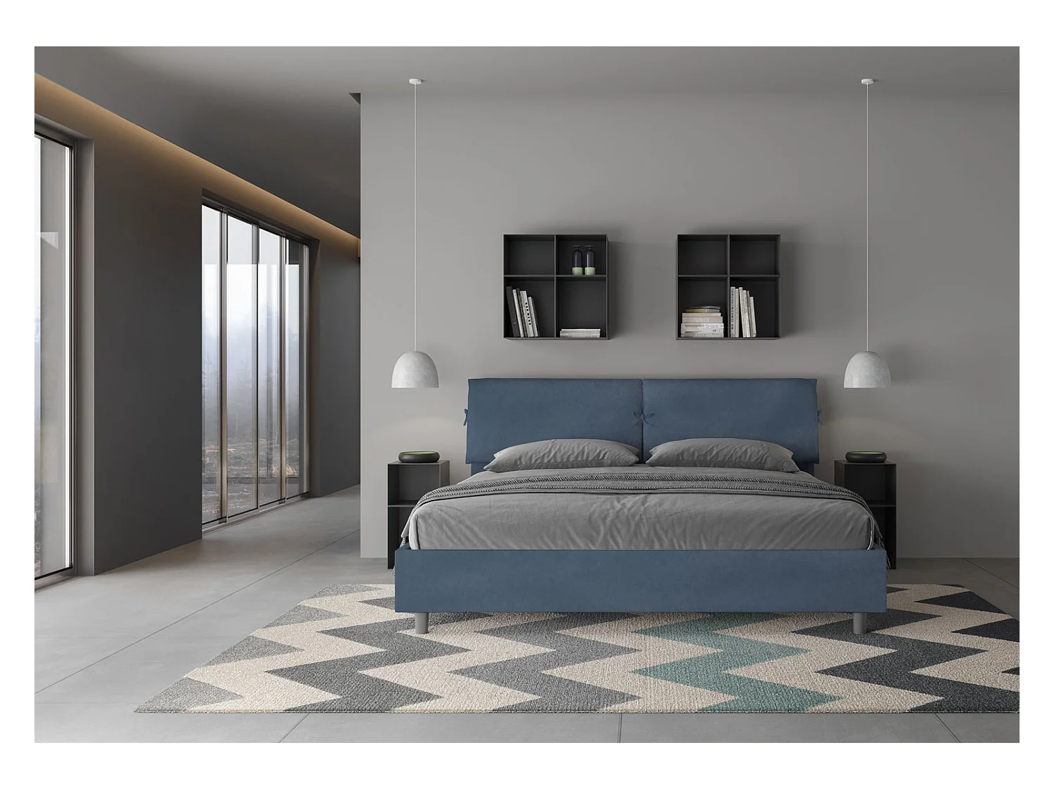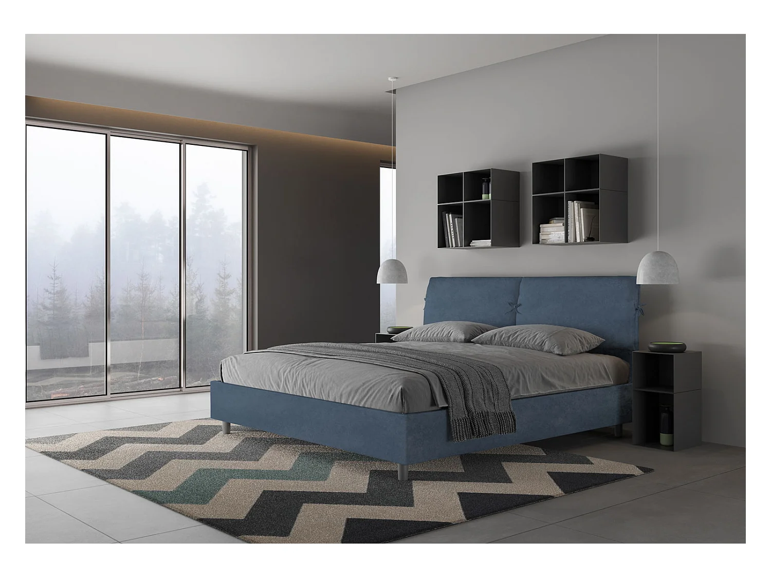 Lit sans sommier rembourré 180x210 microfibre bleu Antea