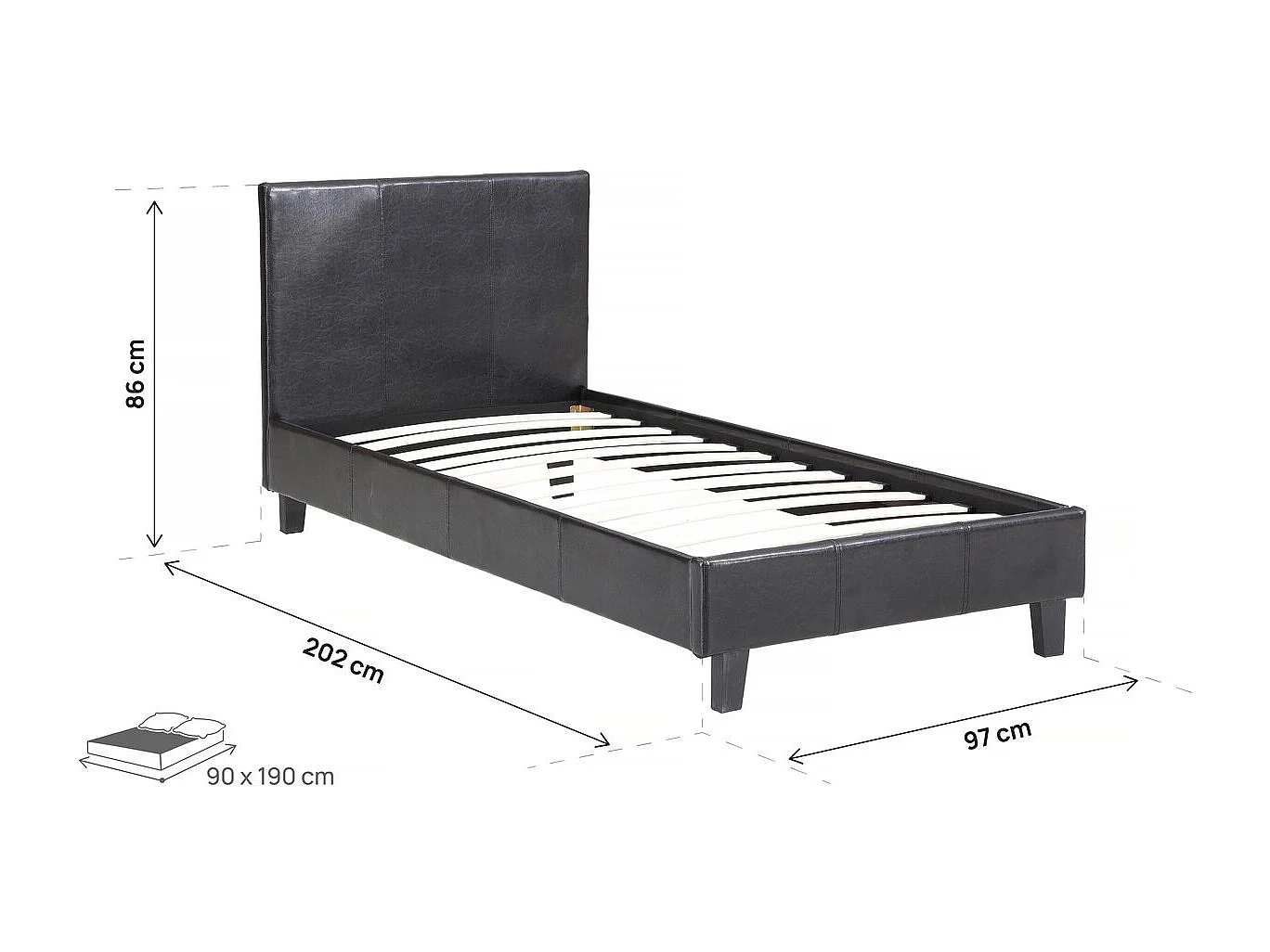 Lit "Lina" - 90 x 190 cm - Noir