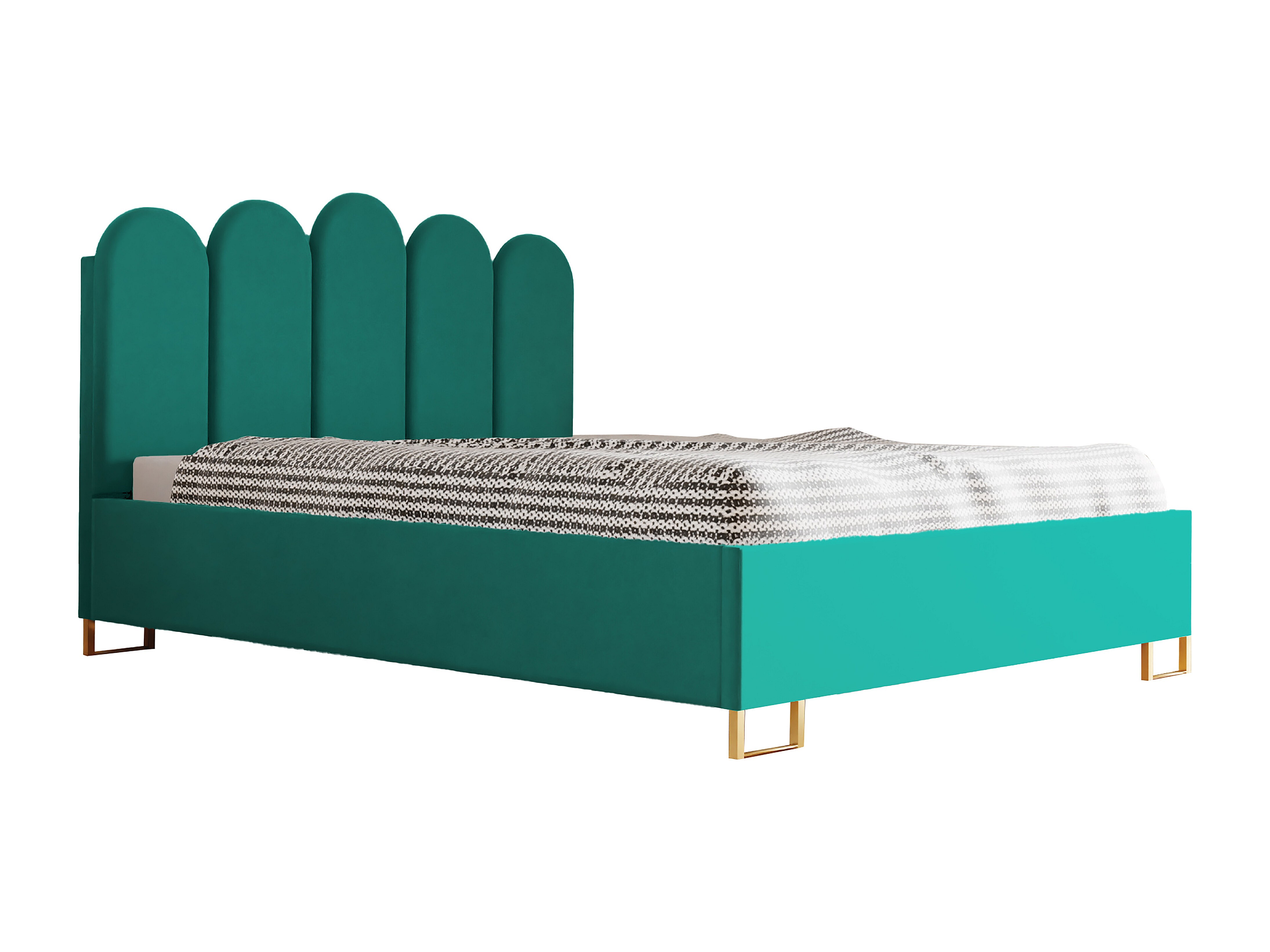 Lit MALAGA, tête de lit rembourrée, revêtement VELUTTO haut de gamme, coffre avec vérins à gaz, hauteur confort 39 cm, 140x200 cm, Vert