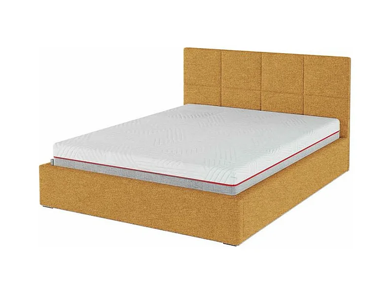 Lit double grands coussins tête de lit rembourré tissu tapissé Viena-Couleur Jaune moutarde-160x200-Option Avec coffre