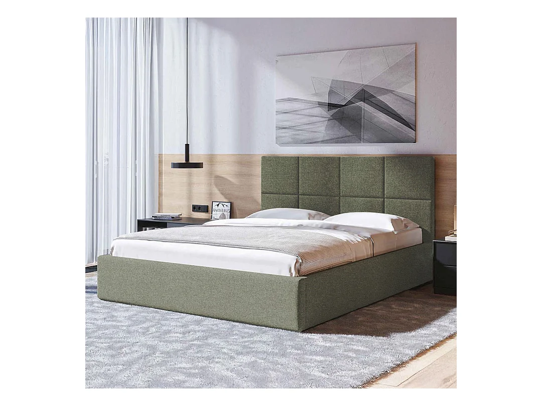 Lit rembourré avec rangement 220 x 240 - en Strukturstoff - olive - NOHO