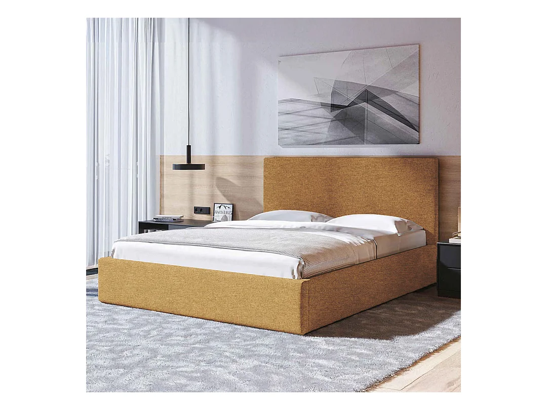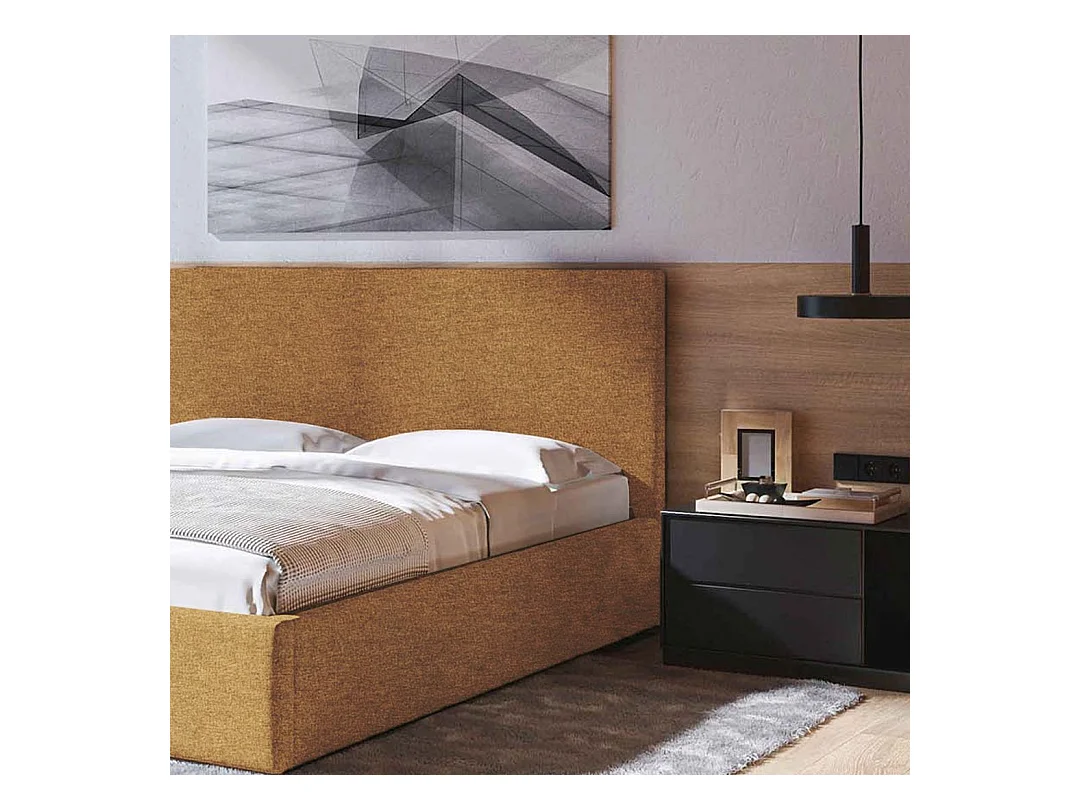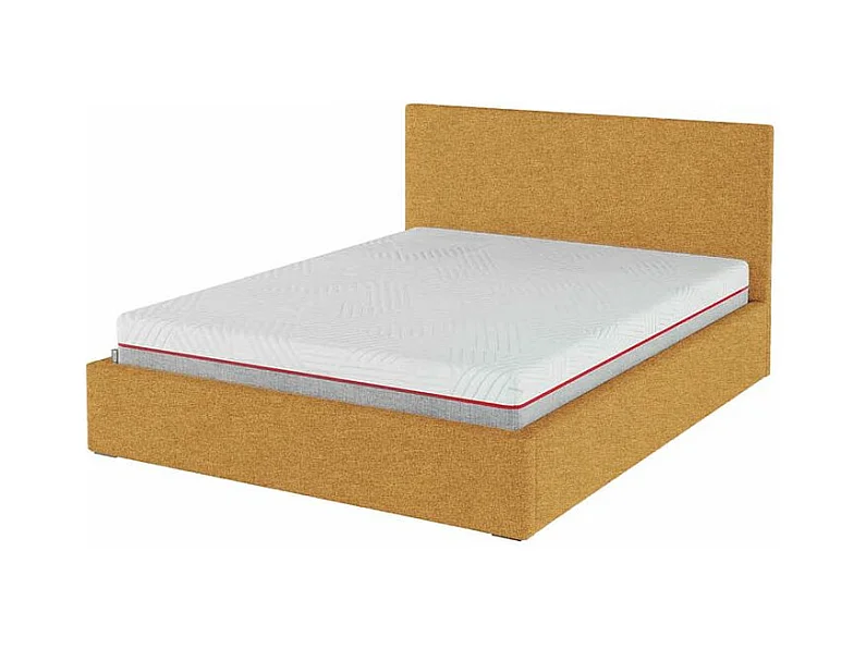 Lit coffre Plika prestige – Design et tissu pour un confort absolu-Couleur Jaune chamoix-140x200