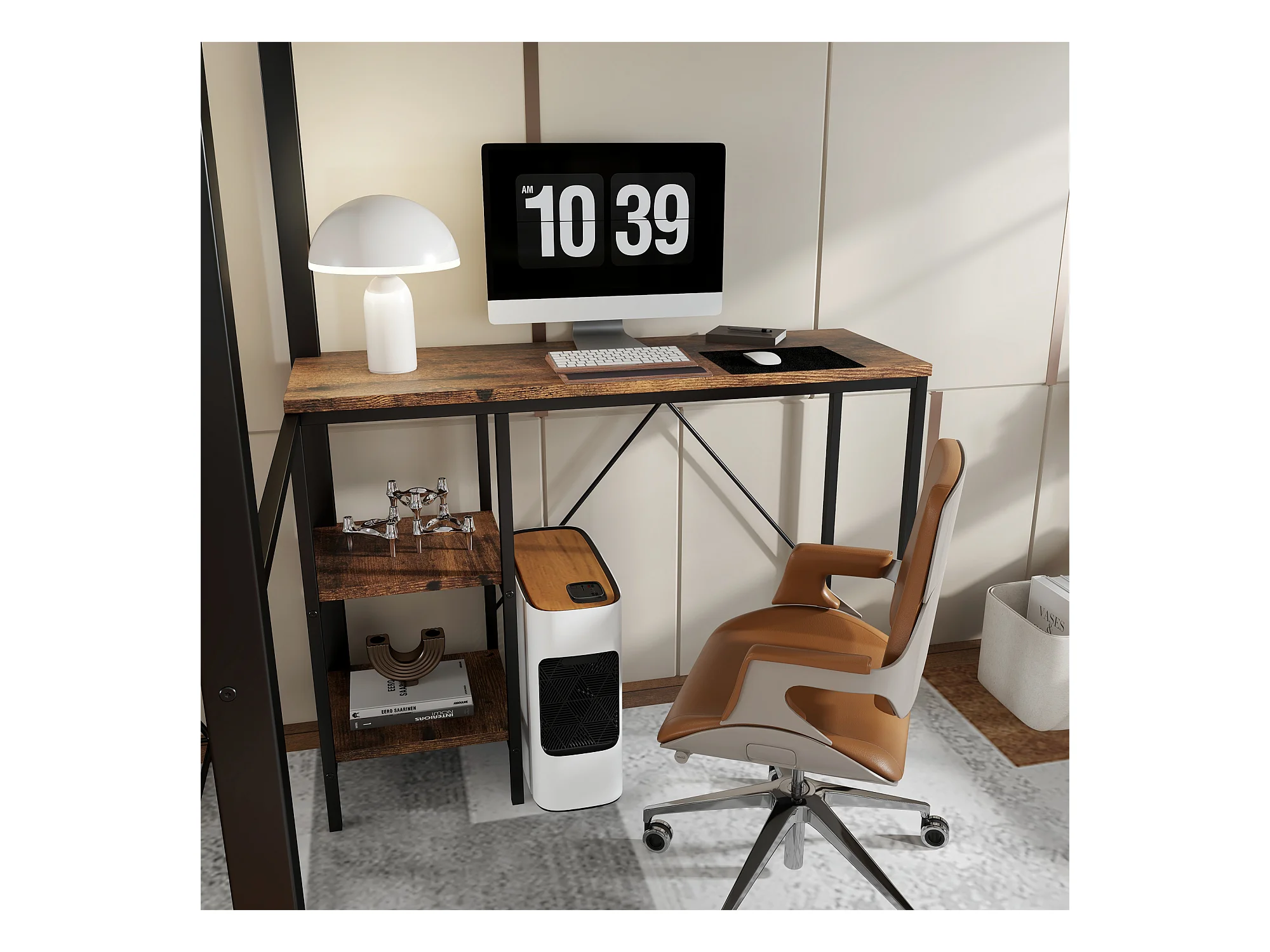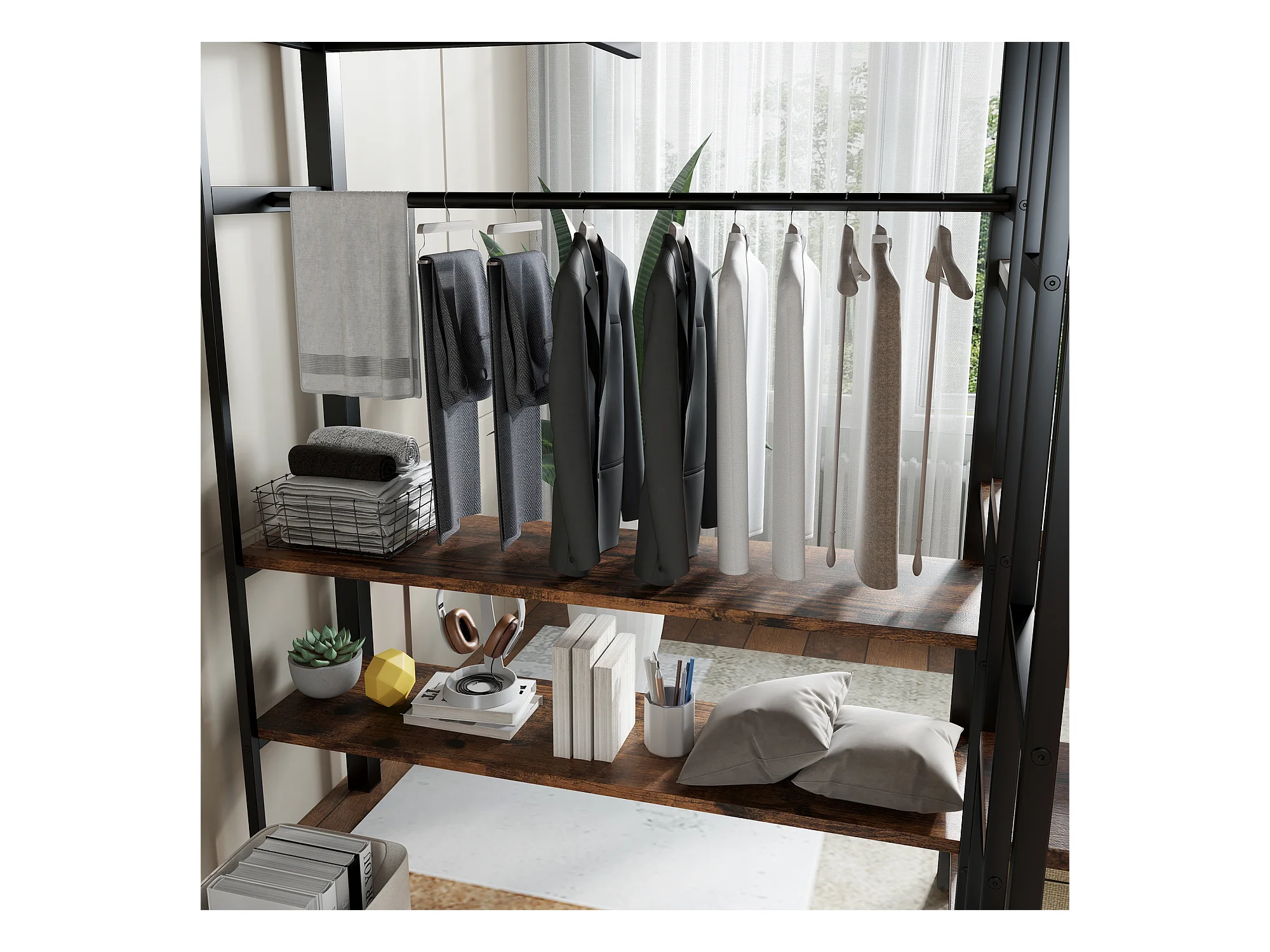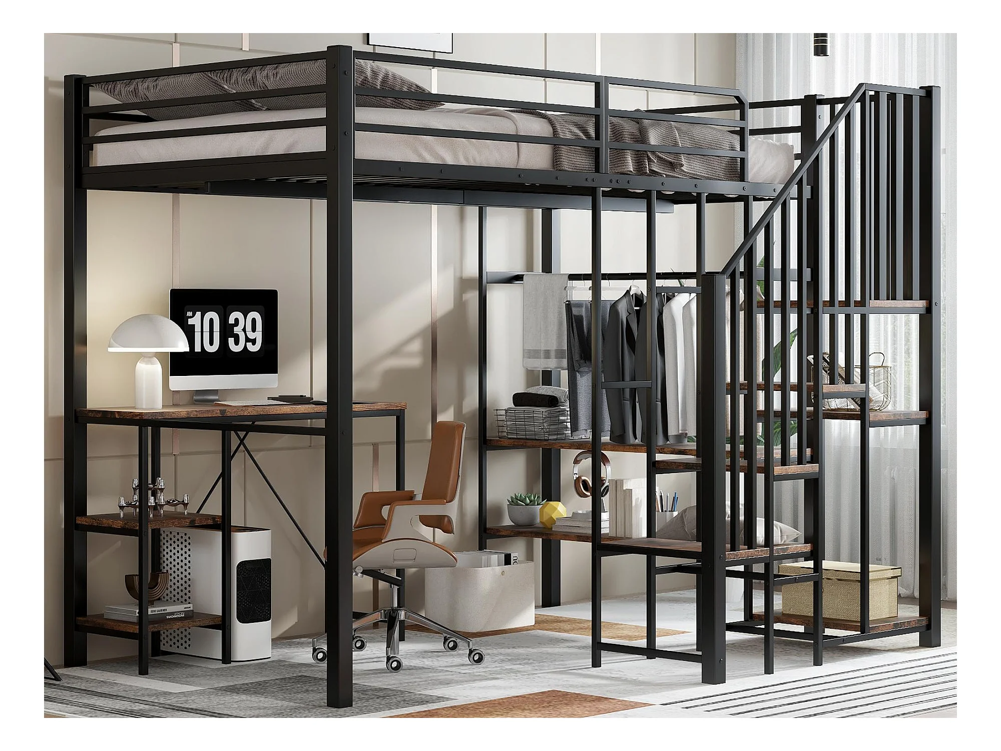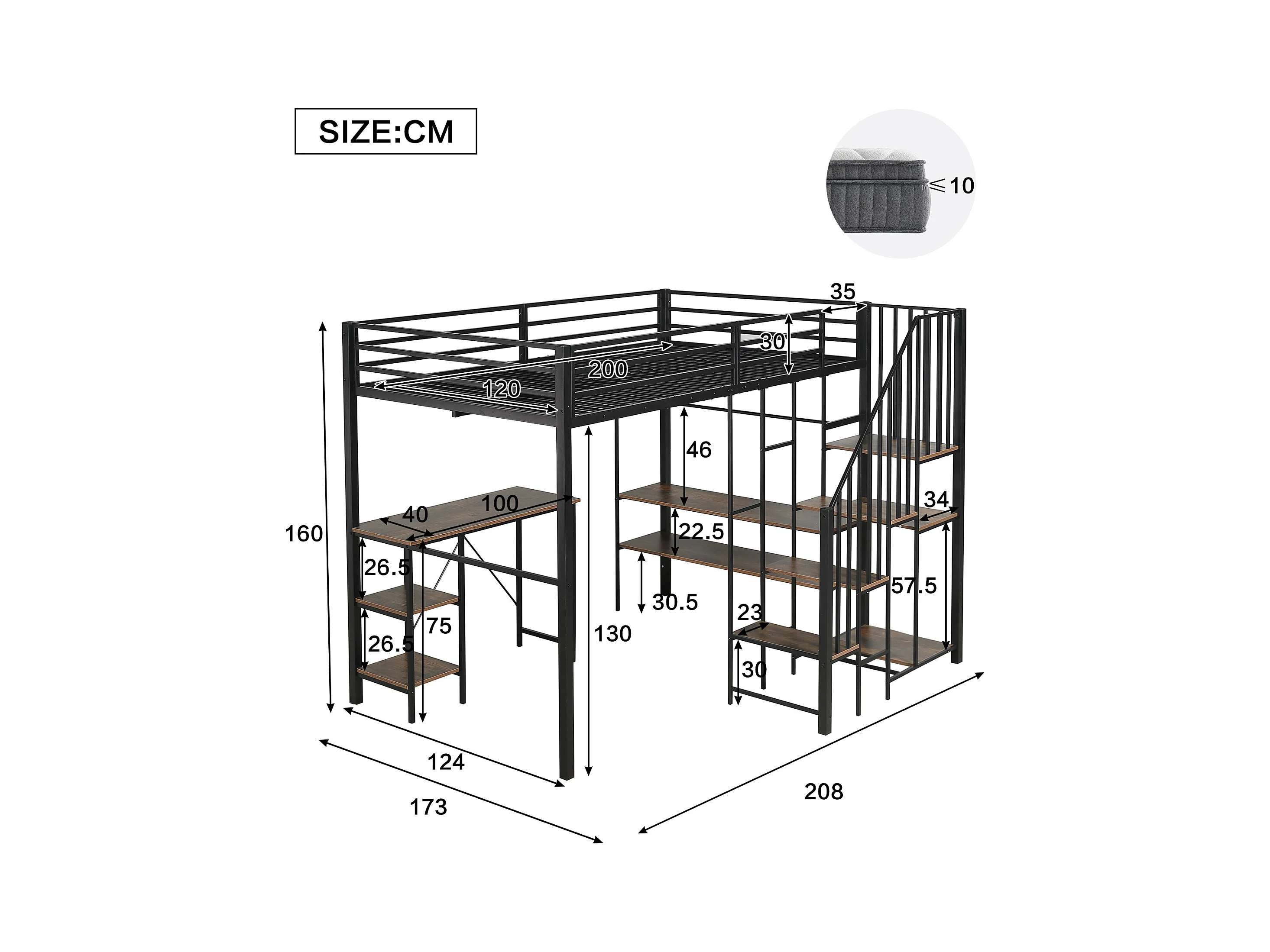Lit mezzanine 120x200 cm - avec bureau et étagère - avec armoire ouverte - échelle de sécurité 4 marches - Noir + Naturel(sans matelas)