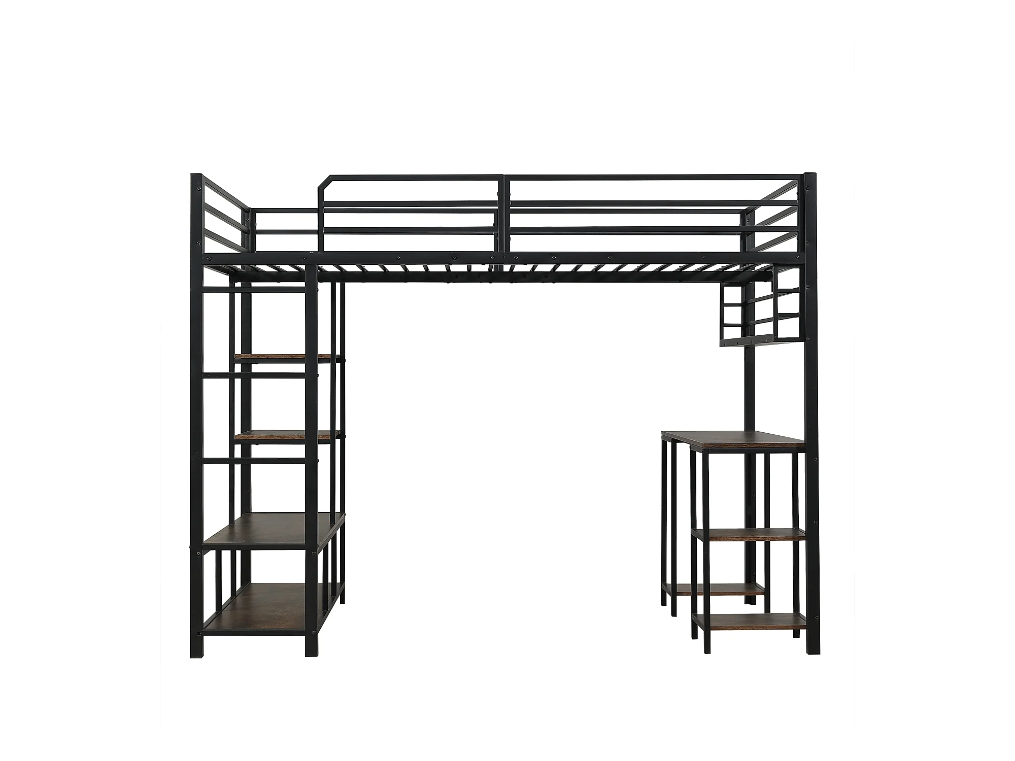 Lit mezzanine 140x200cm en métal - avec étagères et escalier - Noir (matelas non inclus)