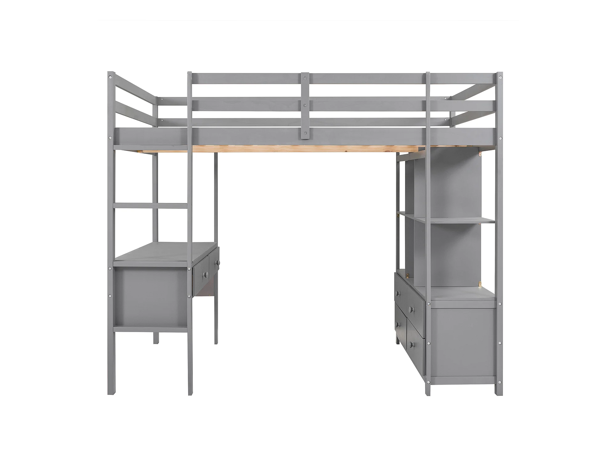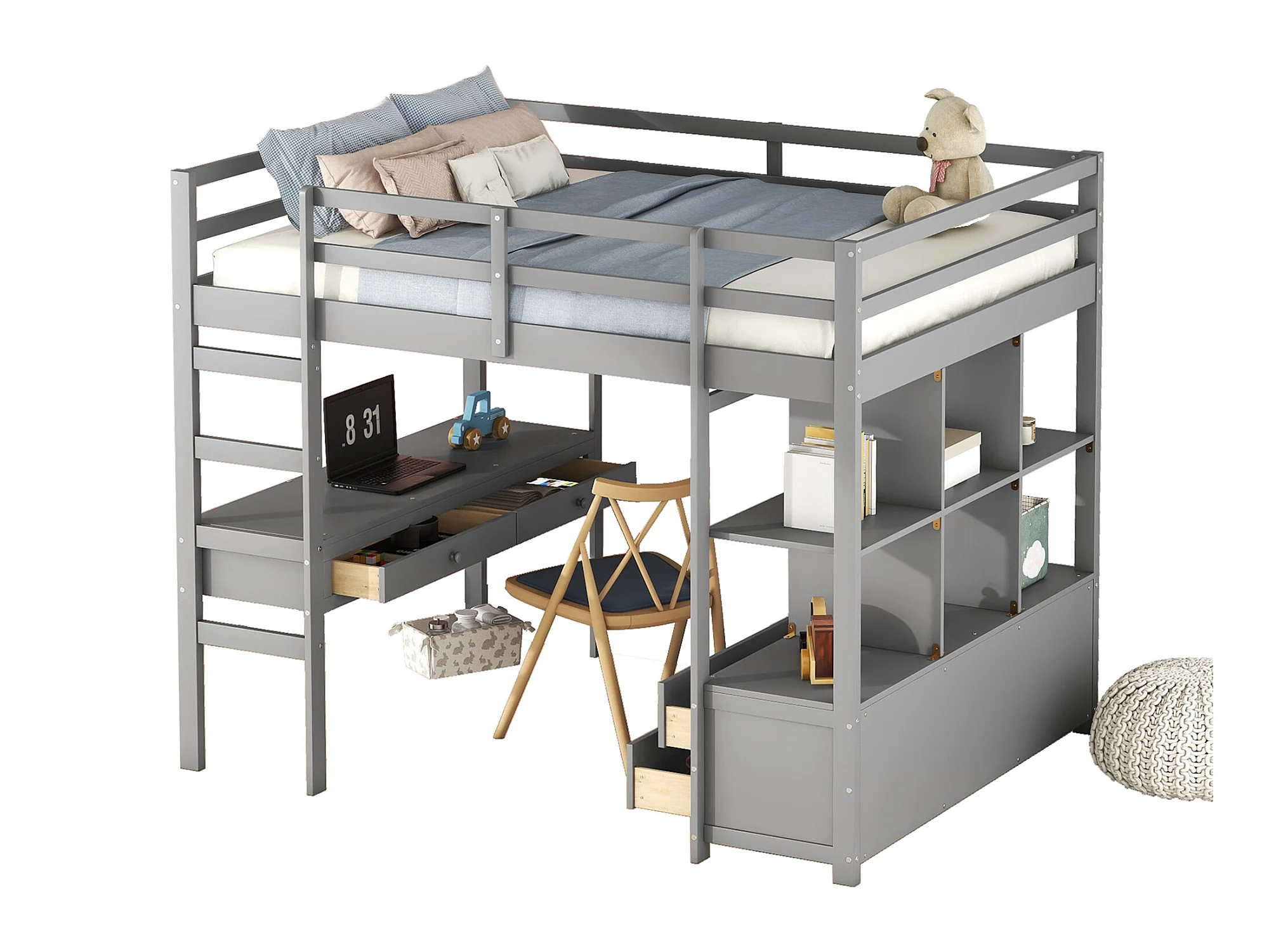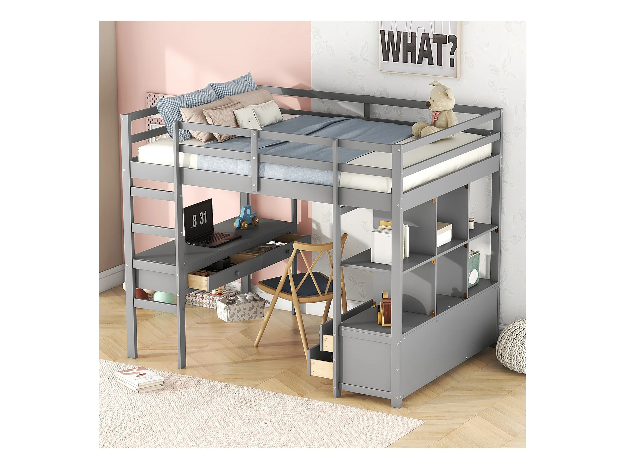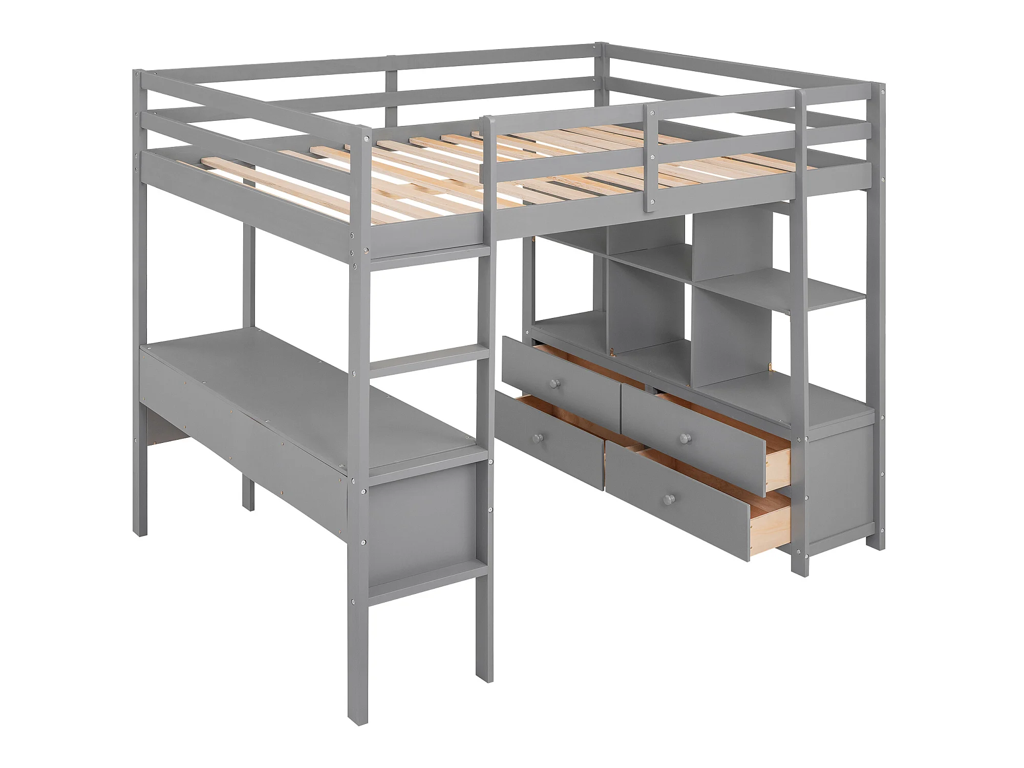 Lit mezzanine 140 x 200 cm pour enfant - bureau et tiroirs - pin - gris