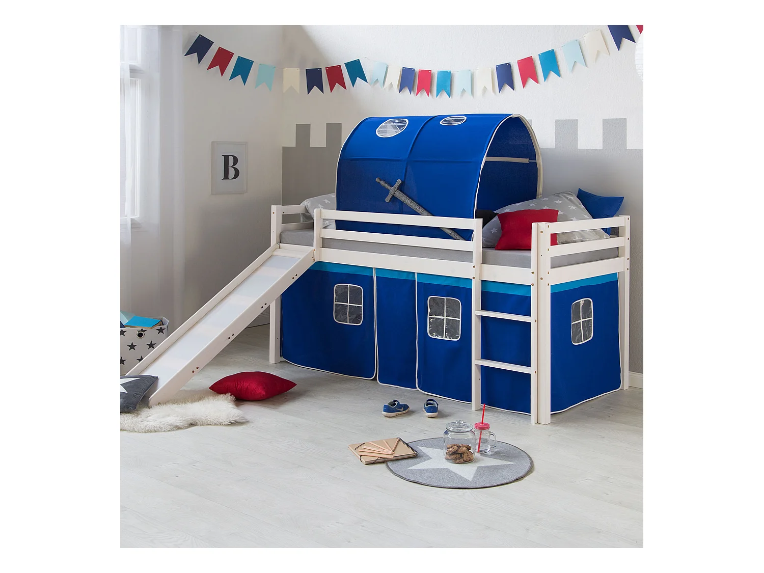 Lit mezzanine 207,5x110x219,5 cm blanc bleu Bois de pin massif