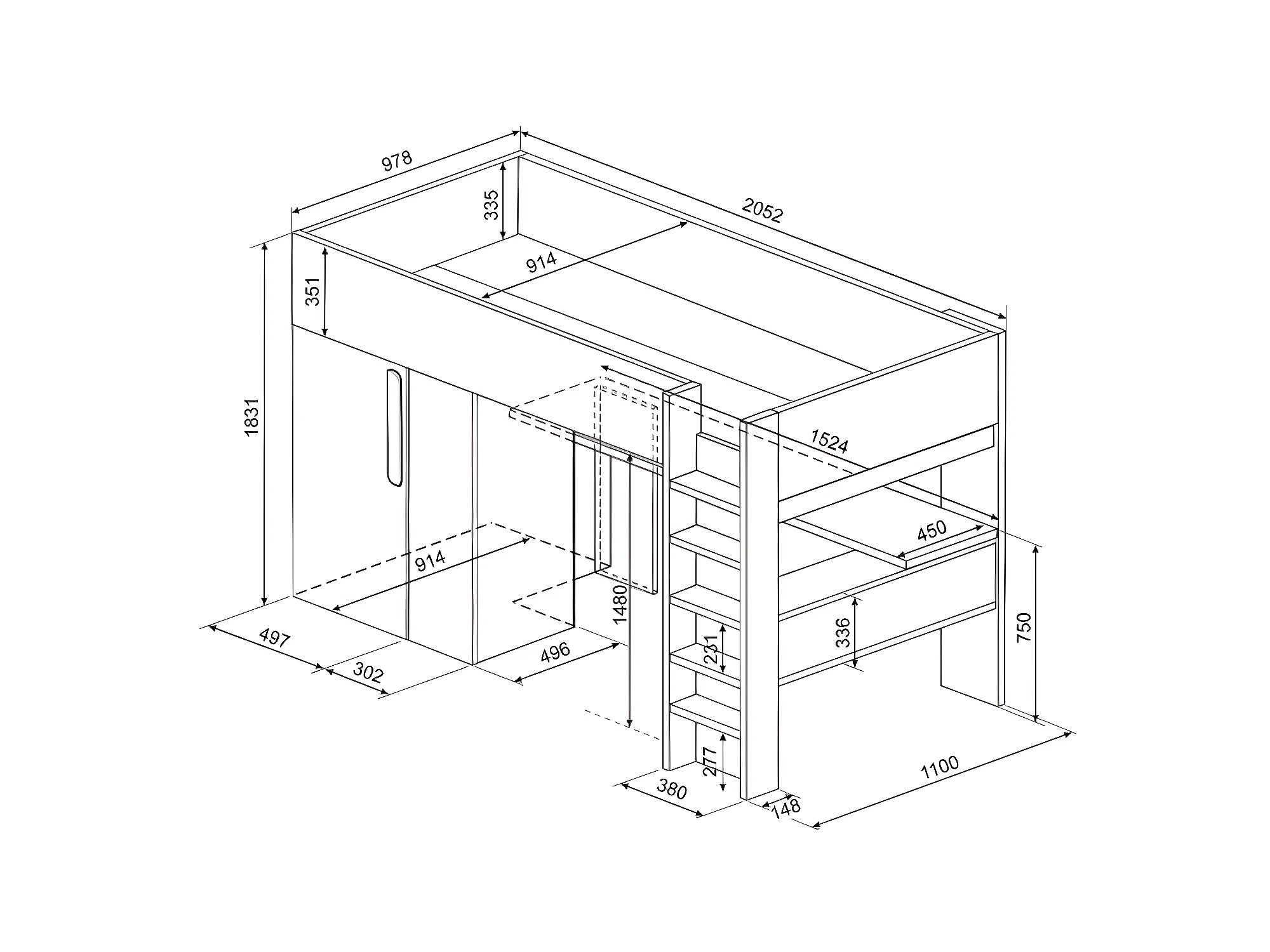 Lit mezzanine 90 x 200 cm avec armoire et bureau - Bleu et blanc - NICOLAS