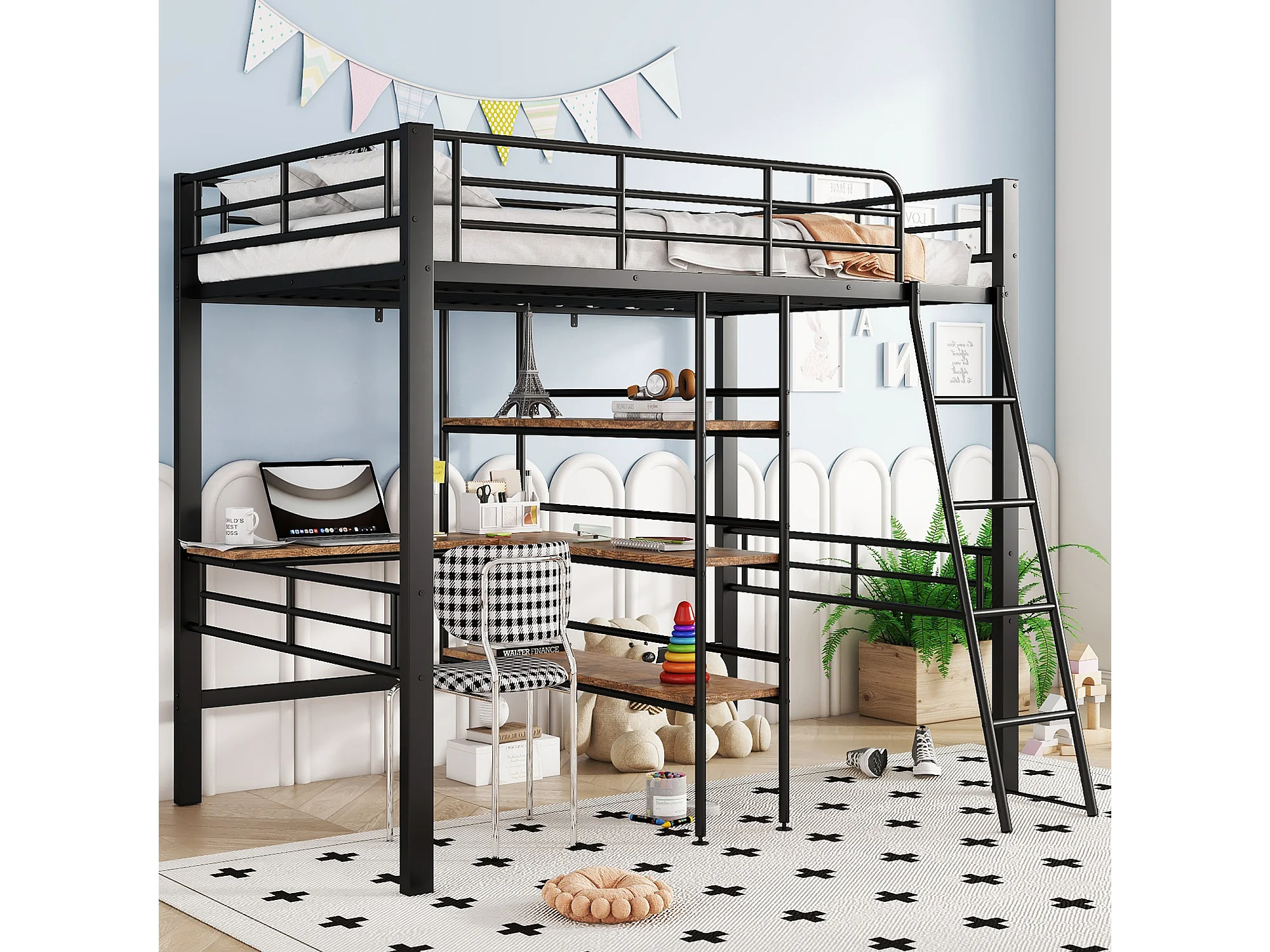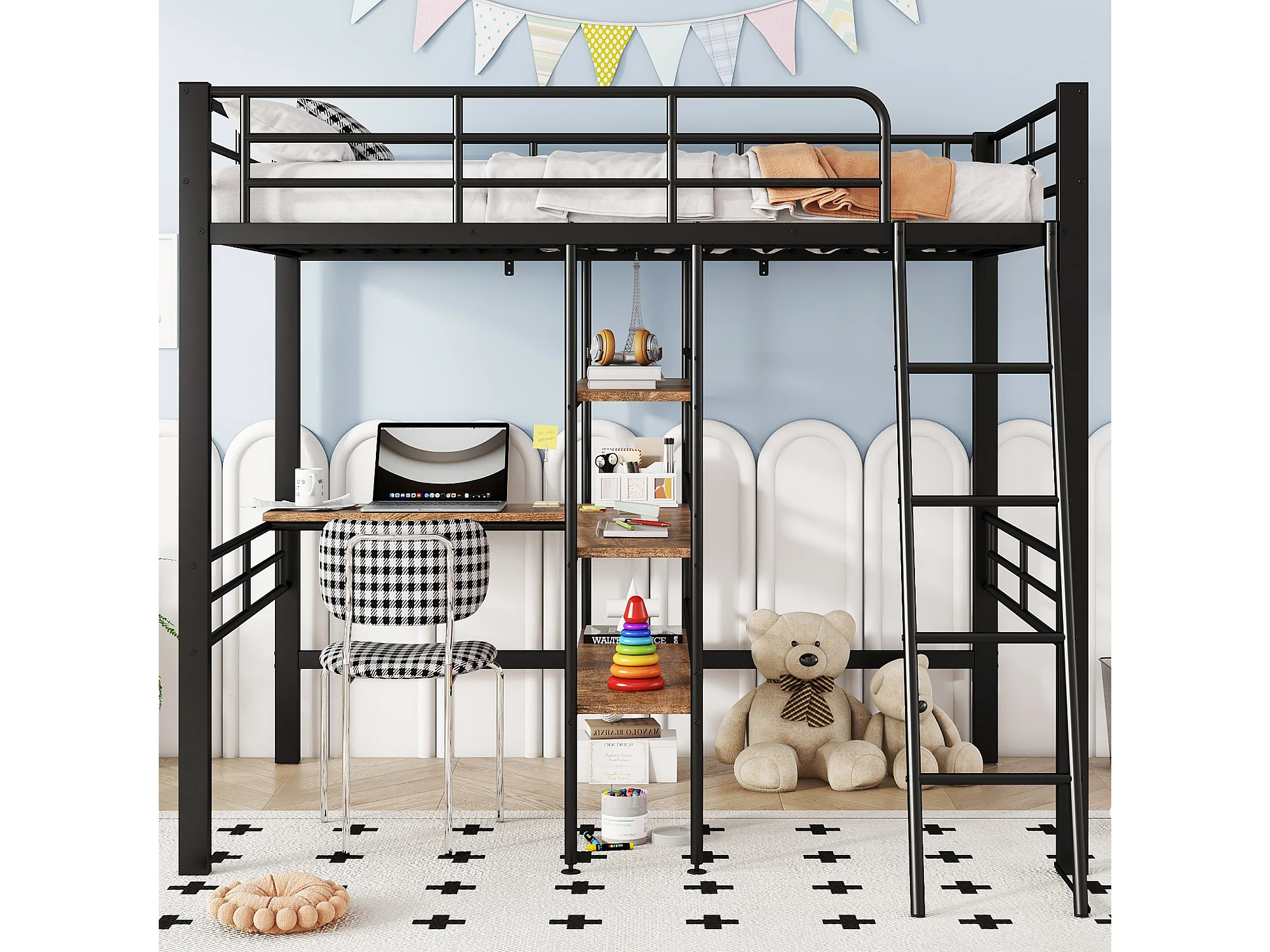 Lit mezzanine 90 x 200 cm - Lit enfant avec bureau et étagère de rangement - noir - sans matelas