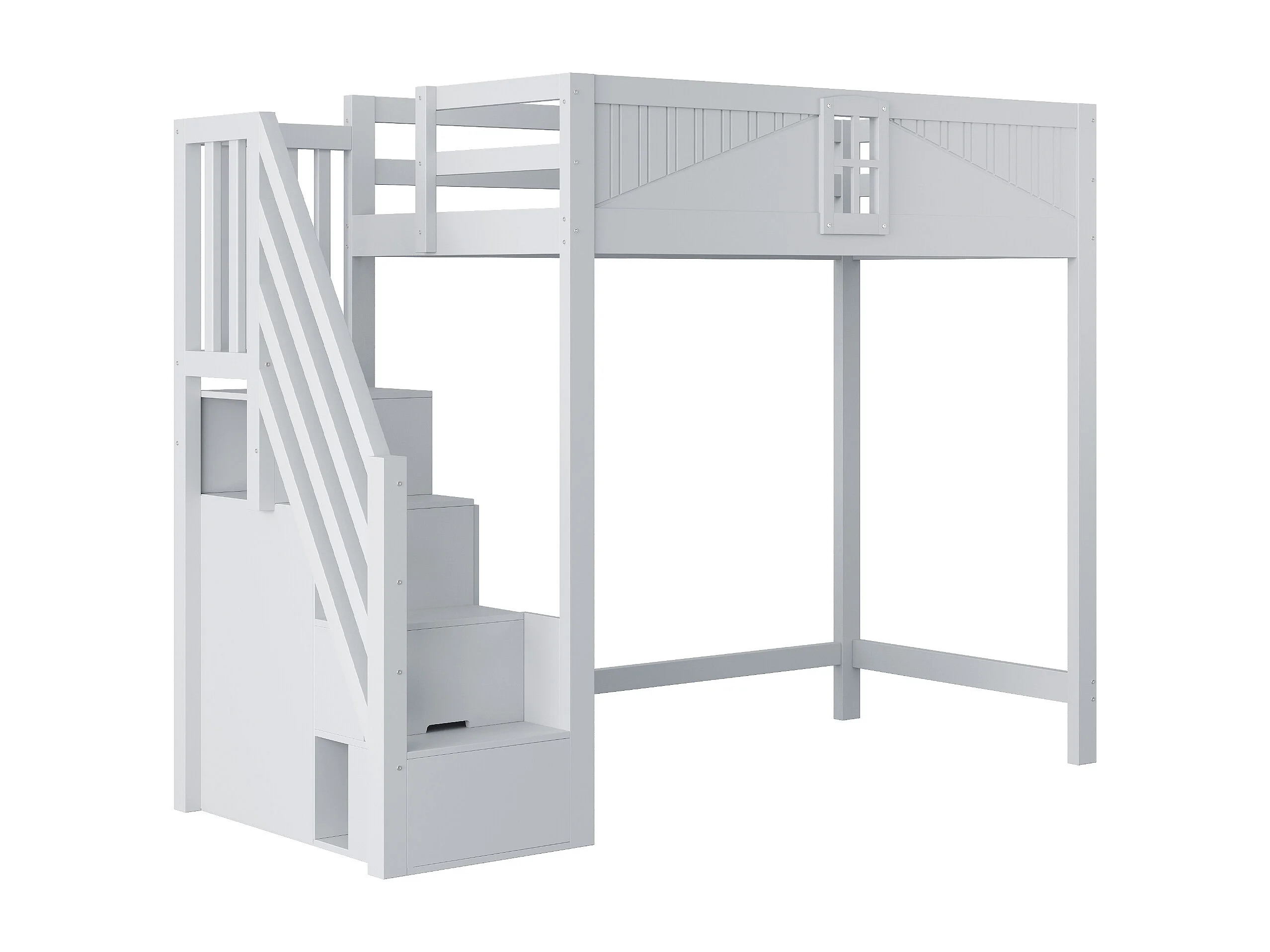 Lit mezzanine 90x200 cm - avec échelle de rangement sécurisée - avec barrière de sécurité - gris (matelas non inclus)