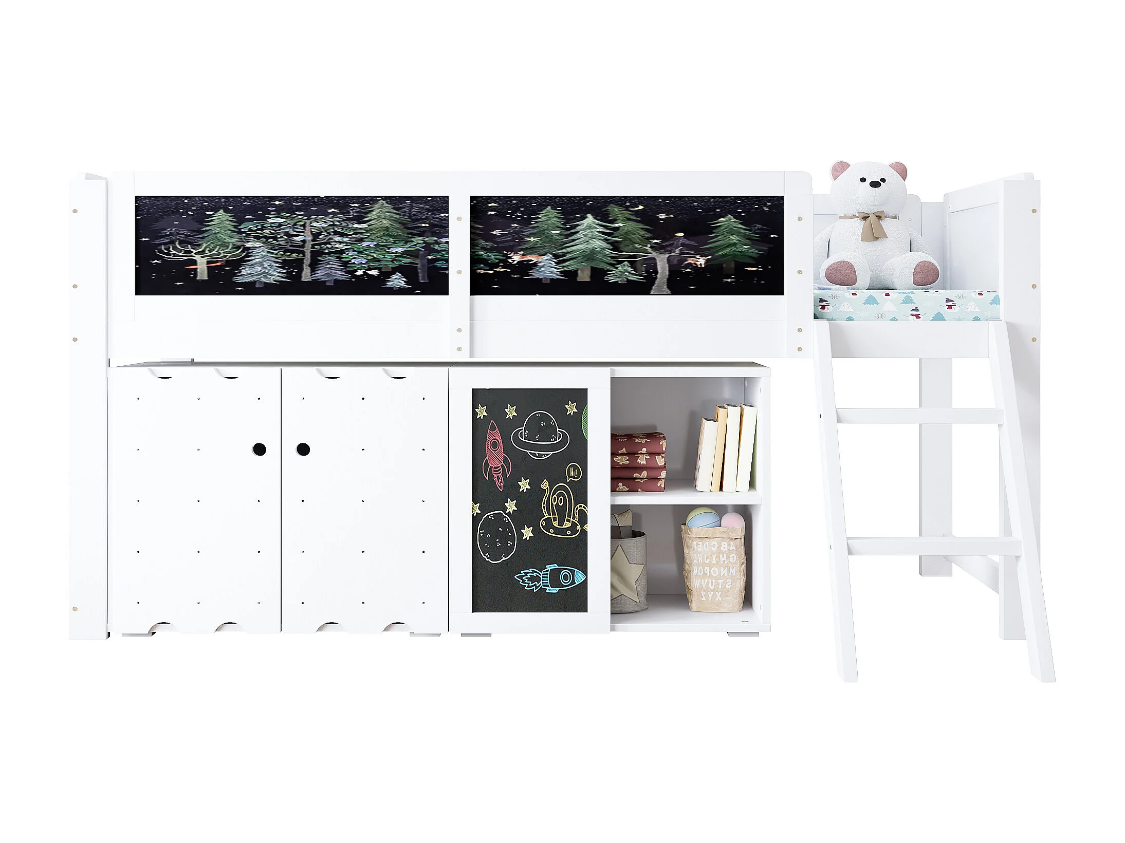 Lit mezzanine en pin massif - 90x200cm - avec un tableau noir - Blanc