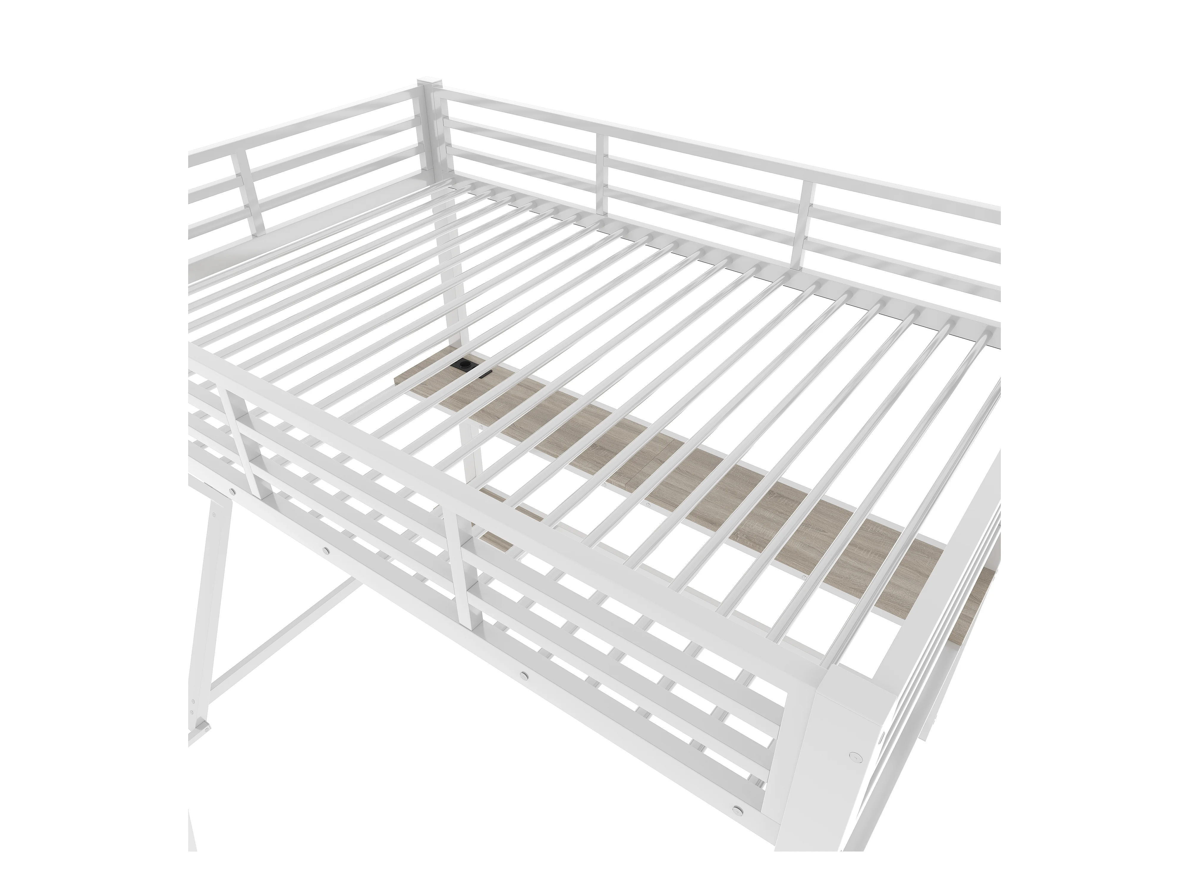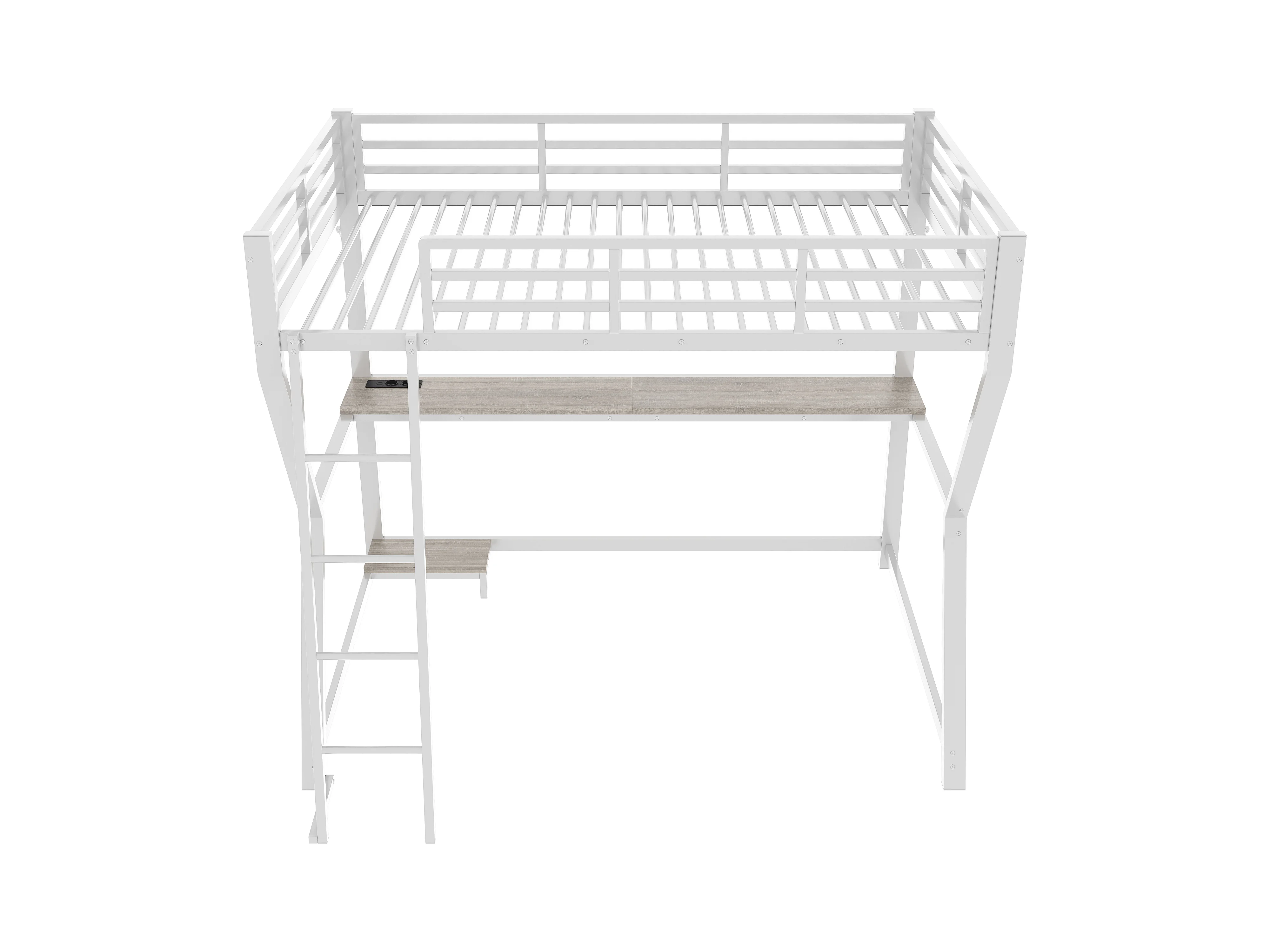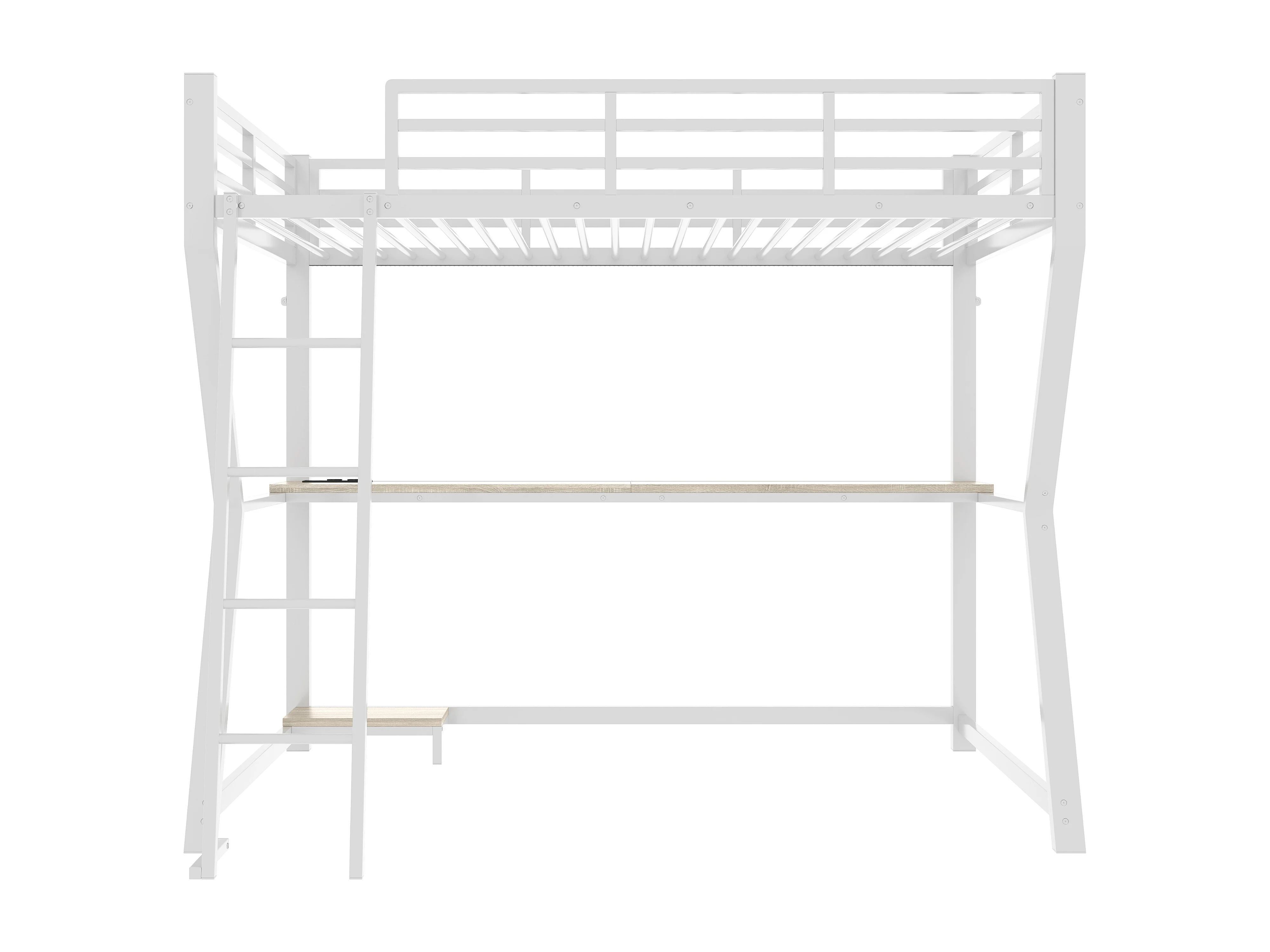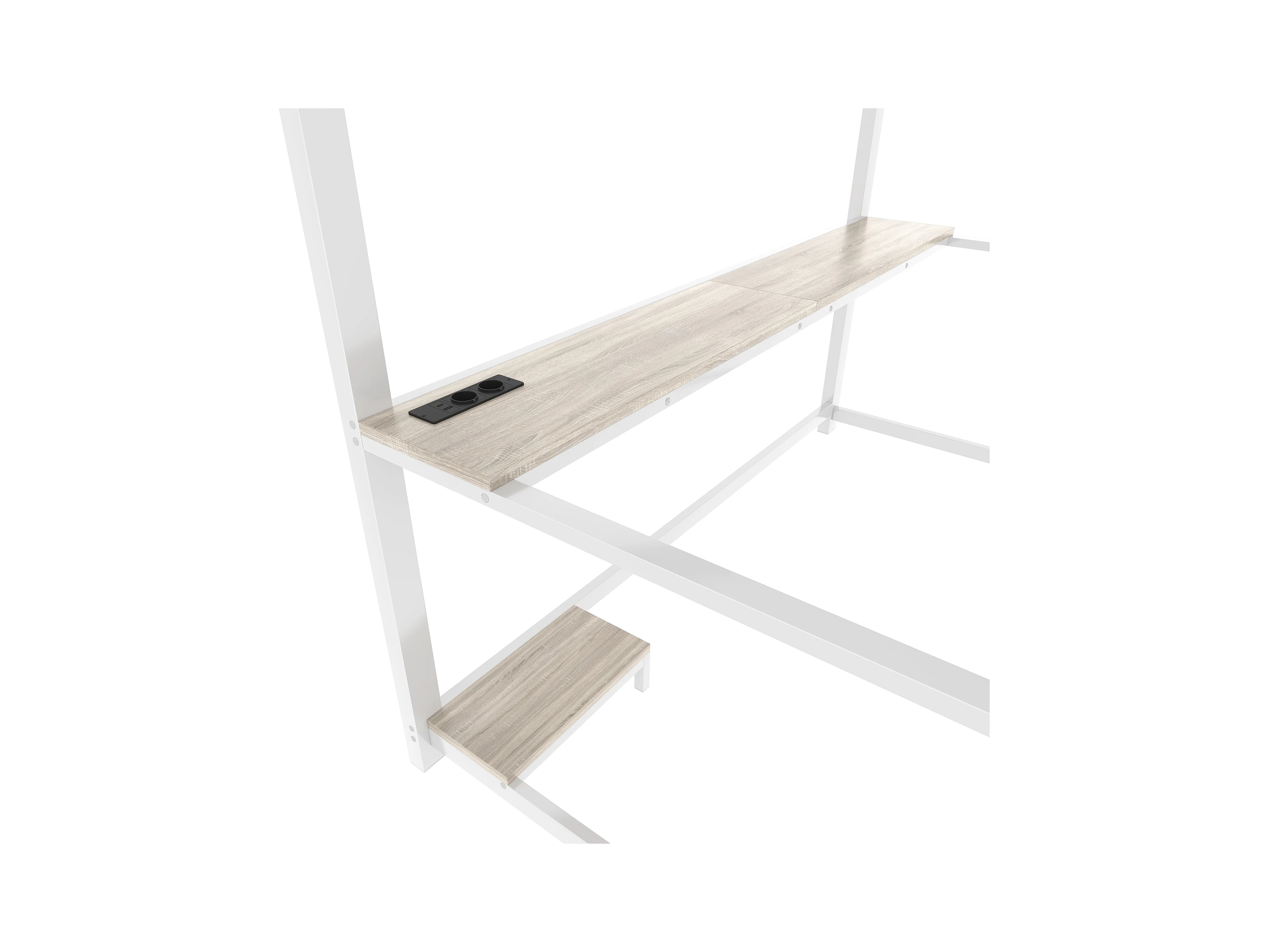 Lit mezzanine 90x200 cm, blanc, lit ado avec éclairage LED et USB, bureau - sans matelas