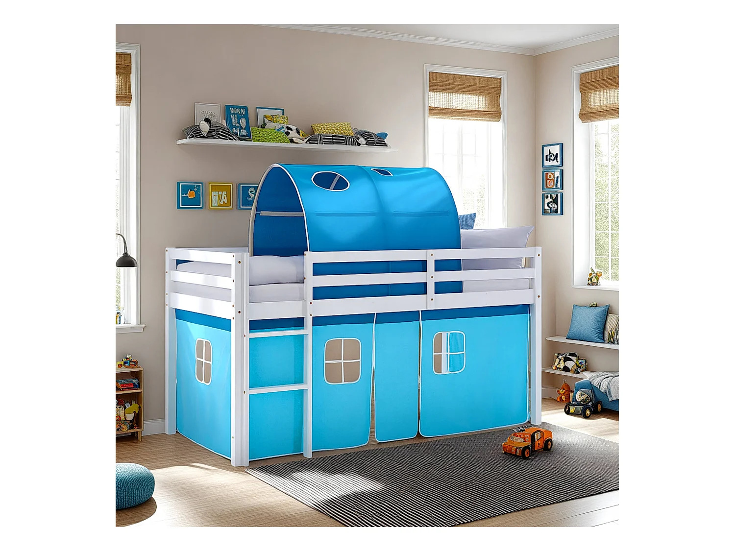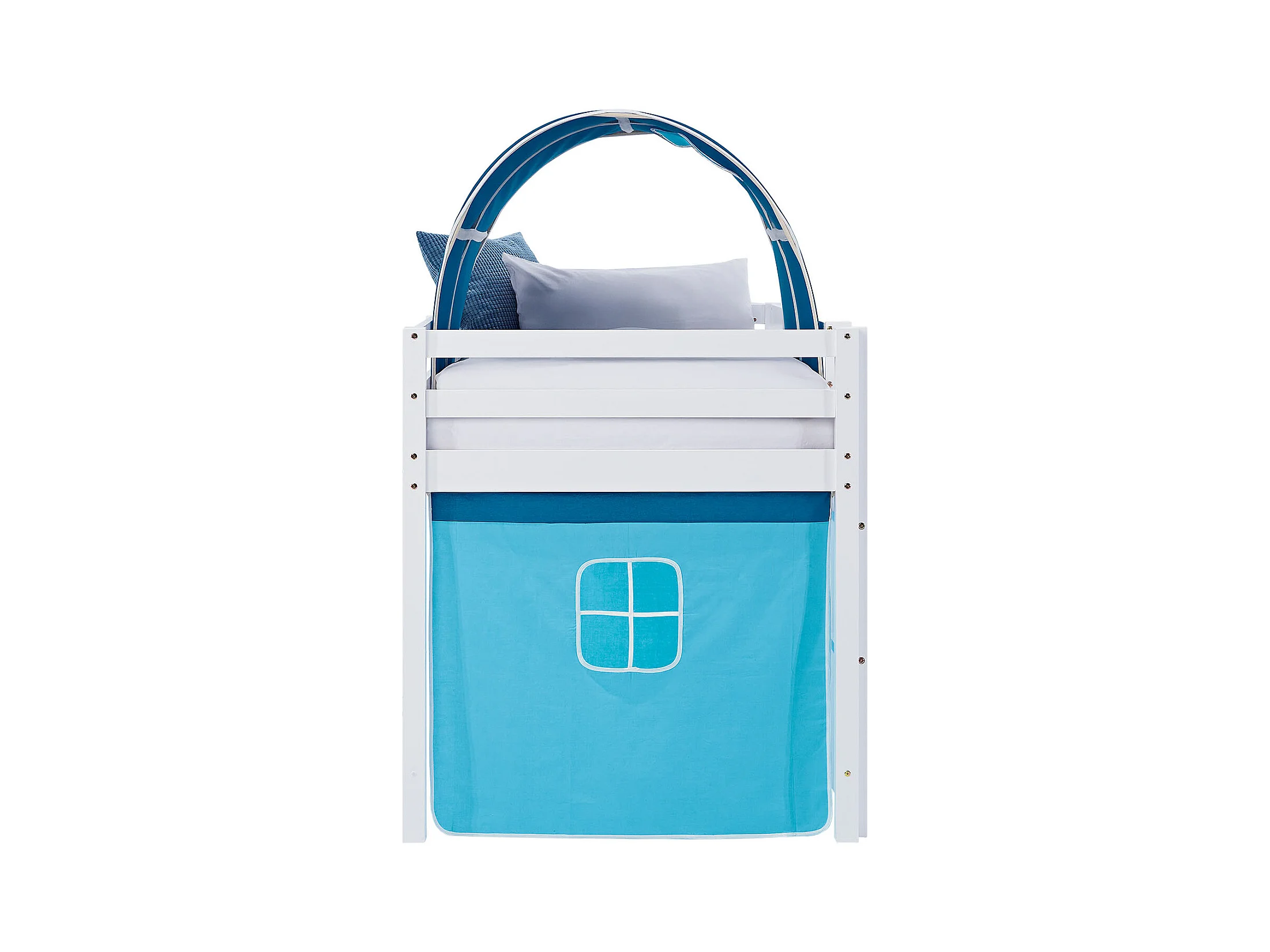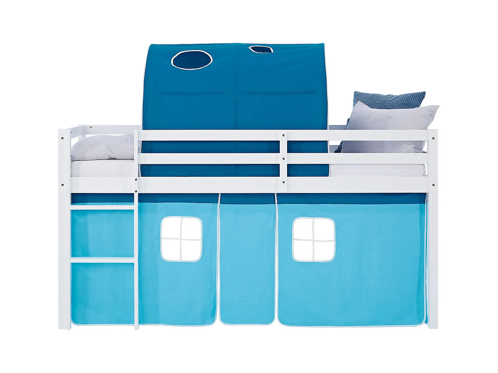 Lit mezzanine pour enfants 90x200 cm blanc bleu avec rideau