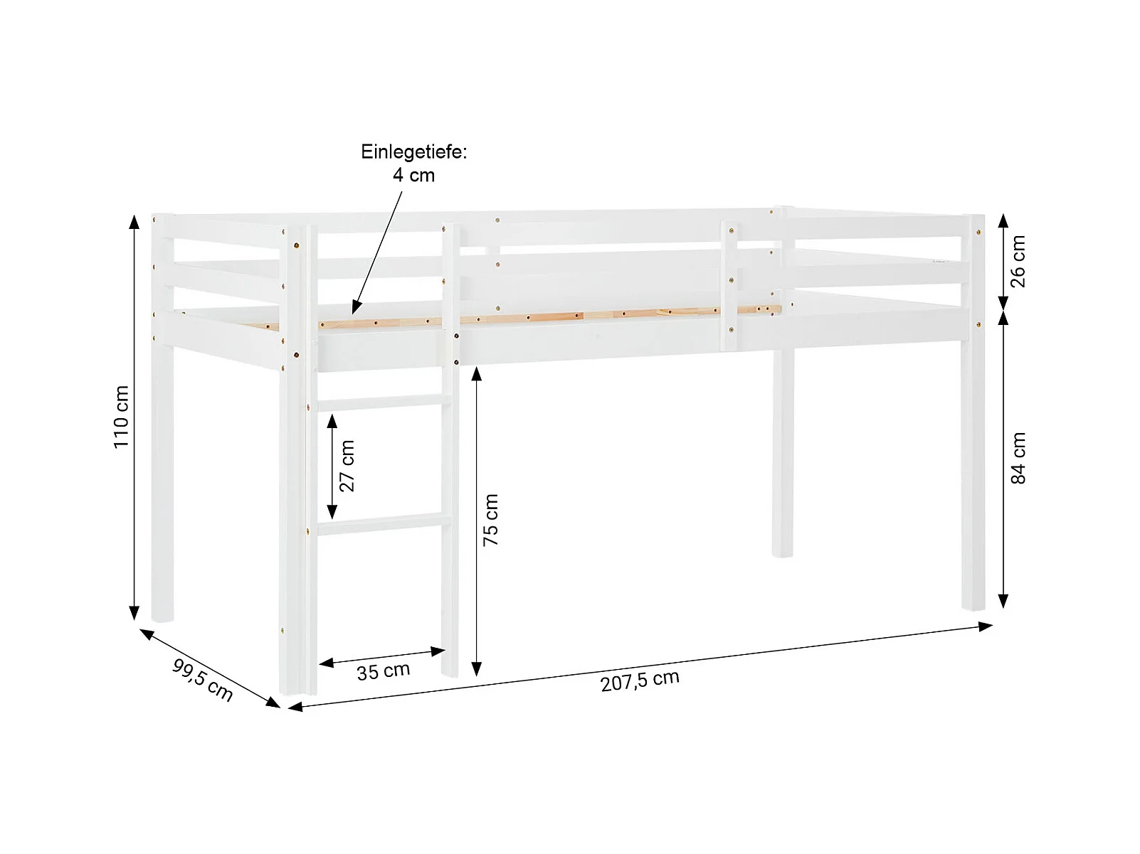 Lit mezzanine pour enfants 90x200 cm blanc