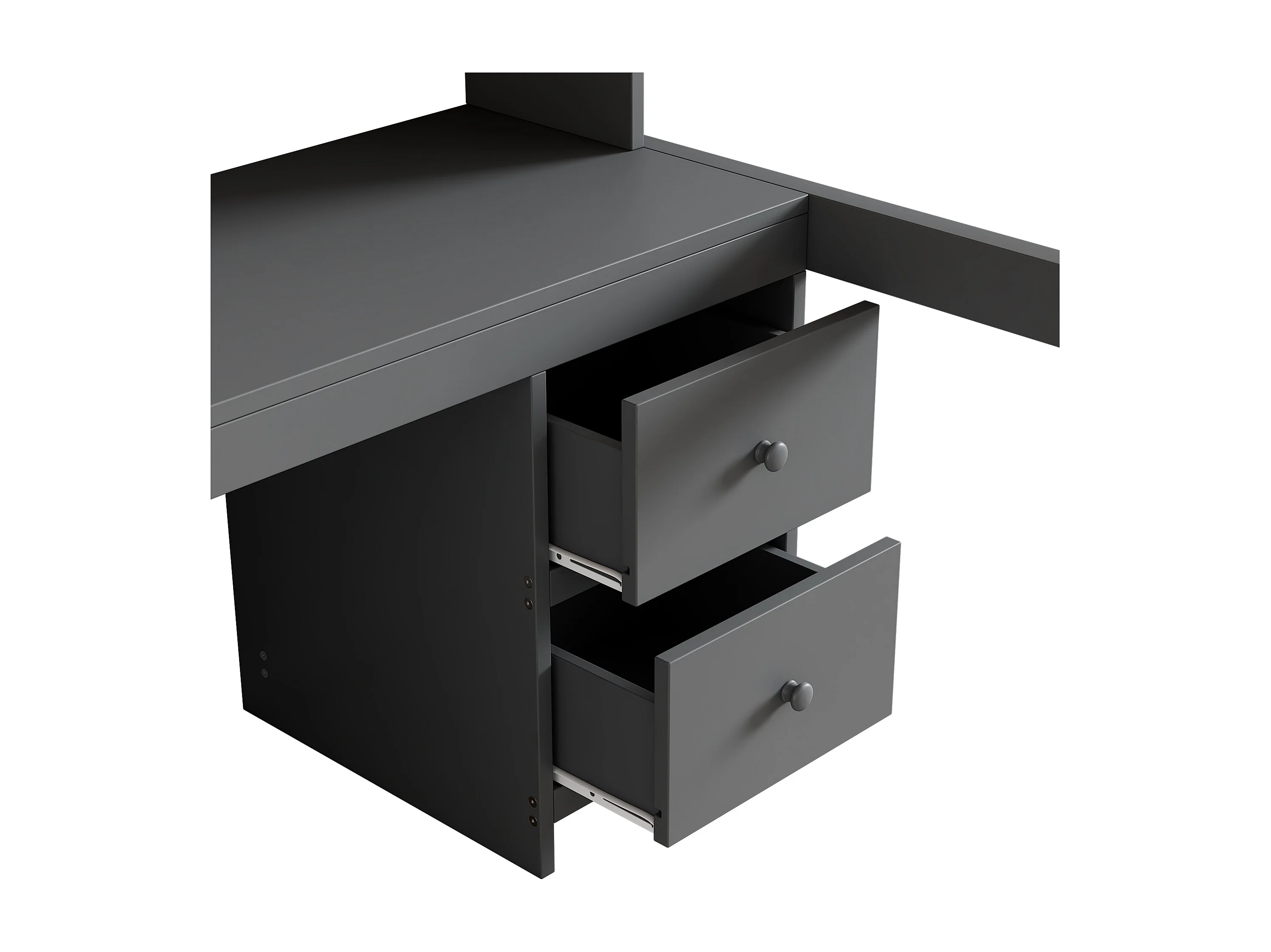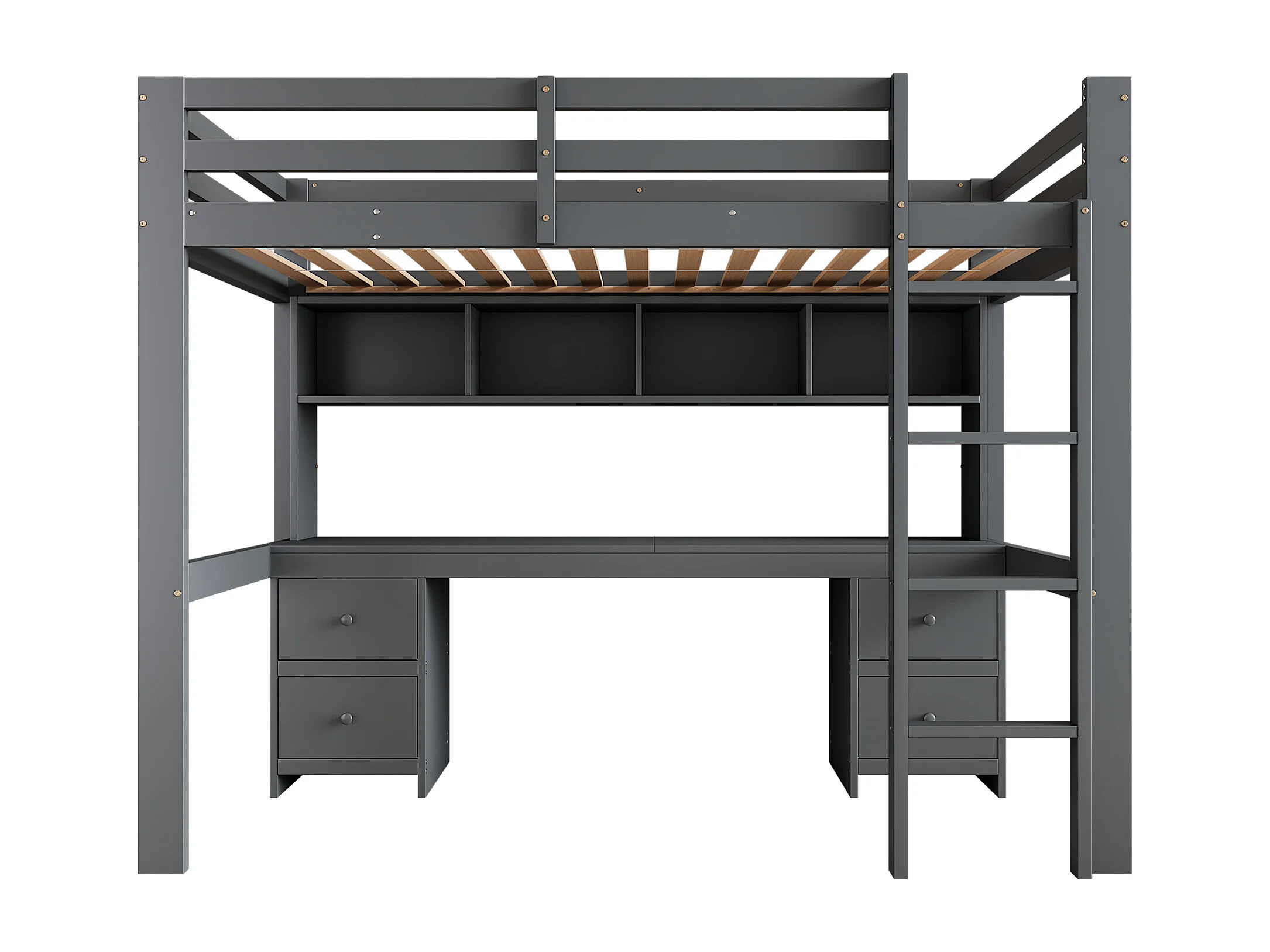 Lit mezzanine 90x200cm - avec bureau et 2 commodes - en pin massif et MDF - Gris