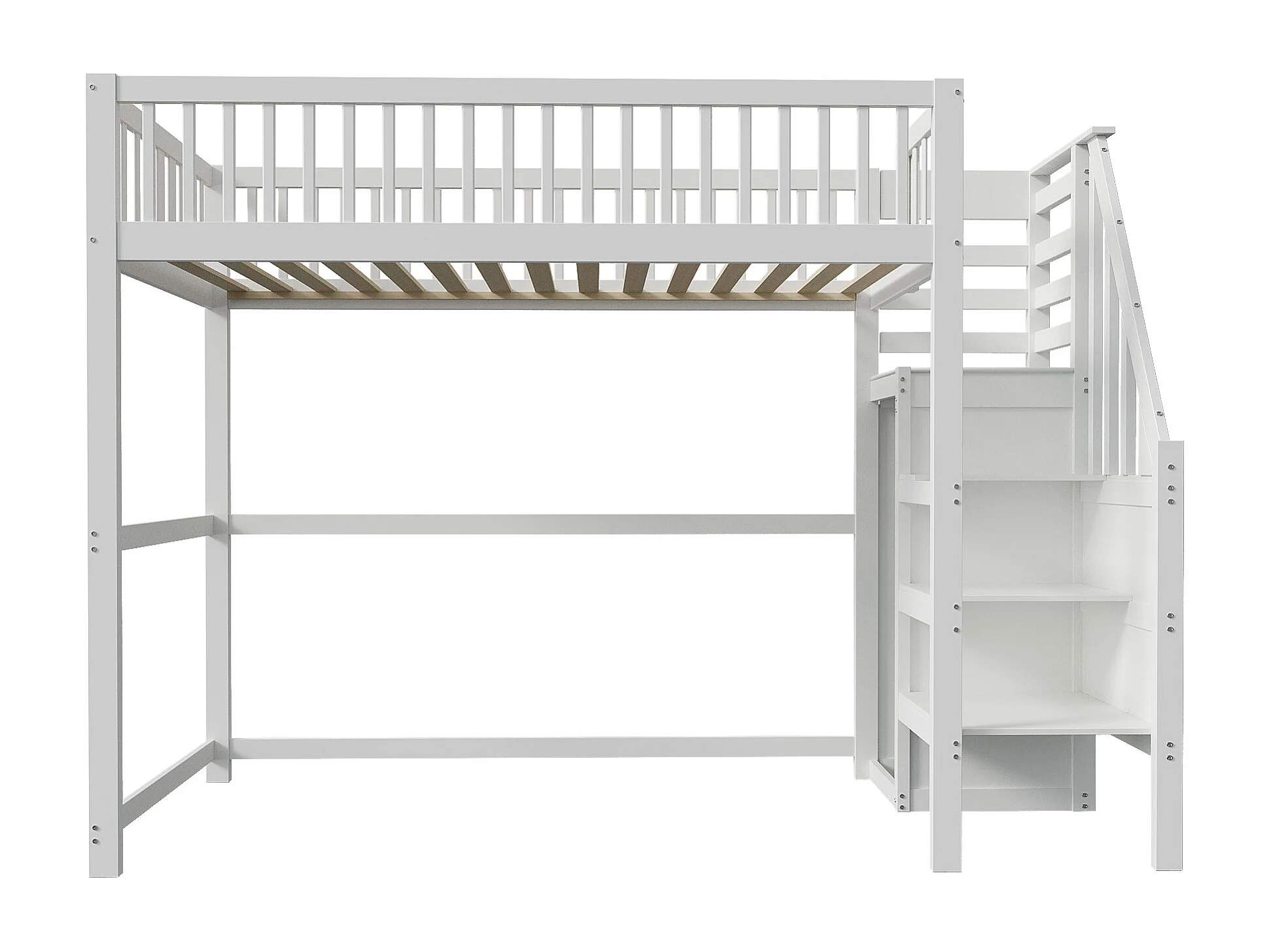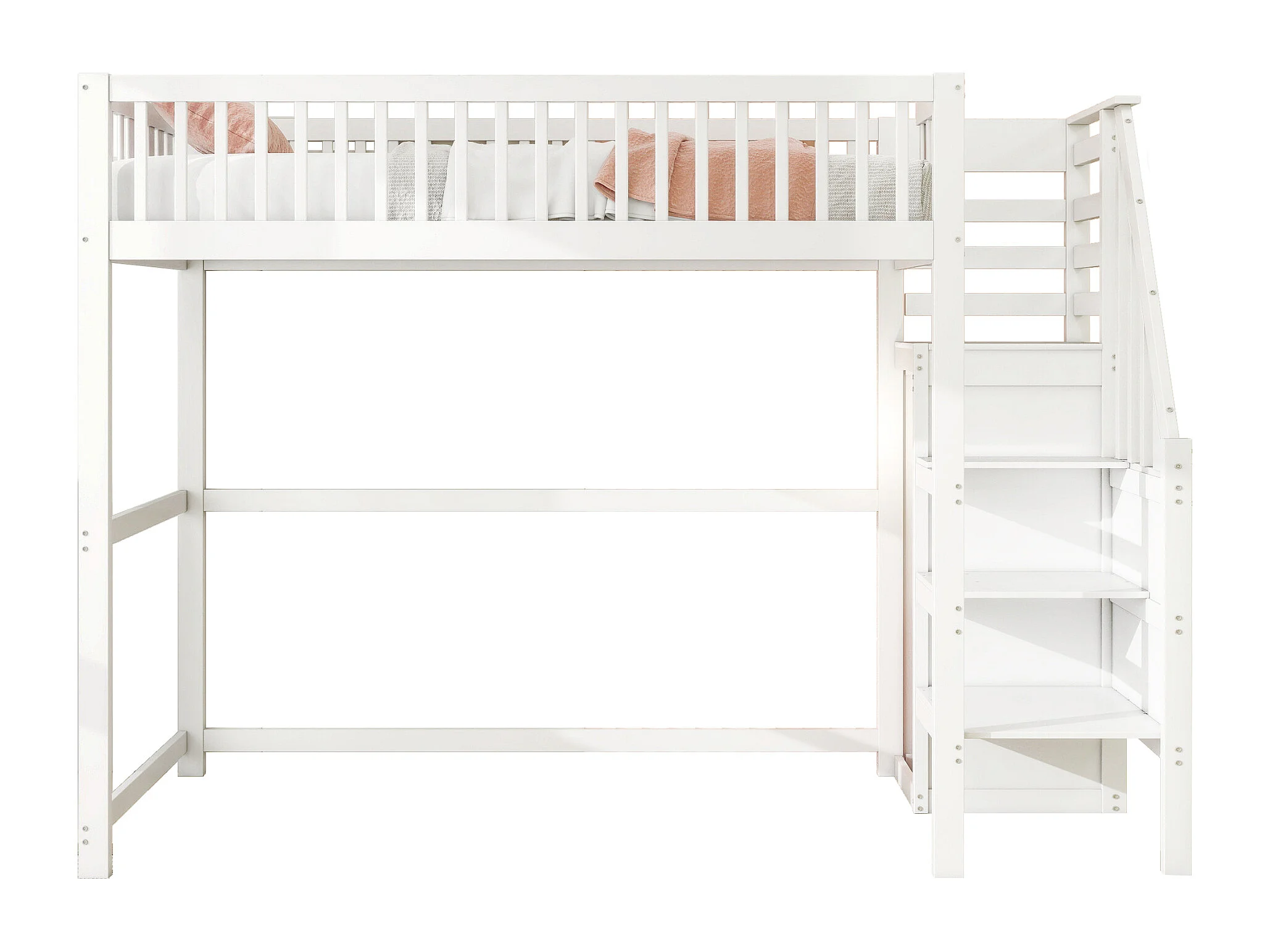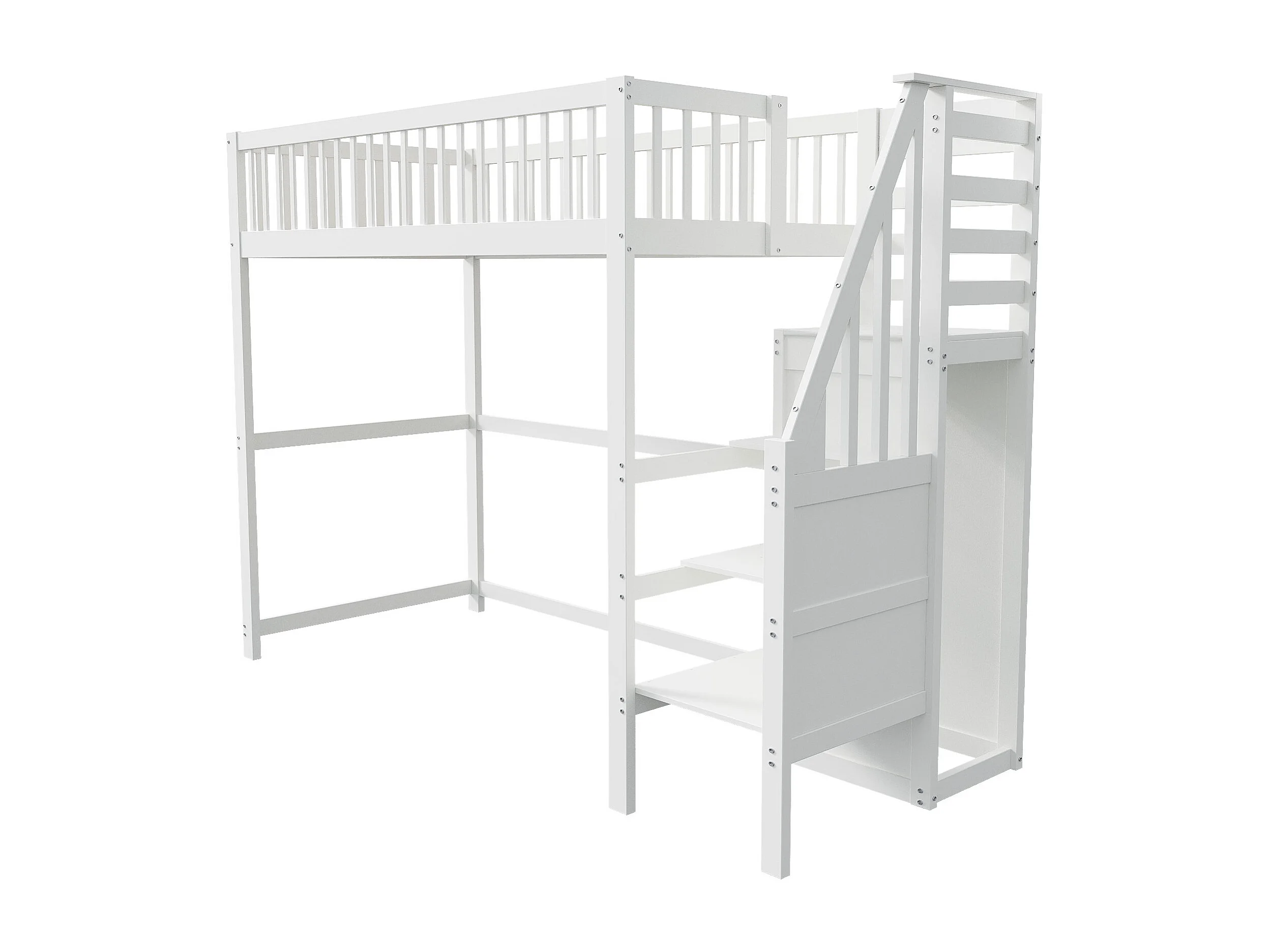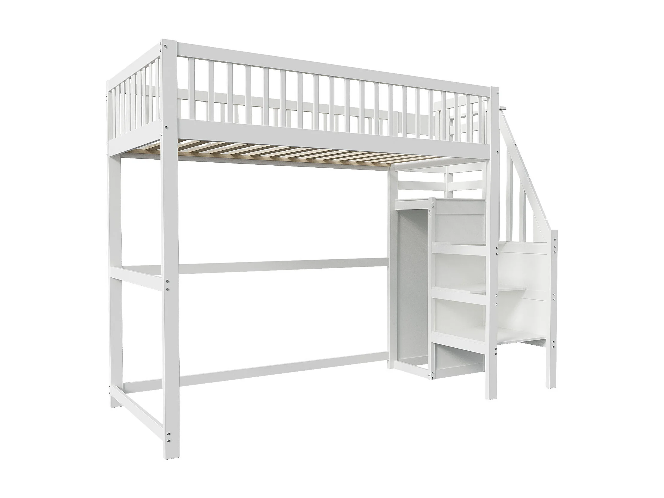 Lit mezzanine 90x200cm en bois - avec une armoire - Blanc