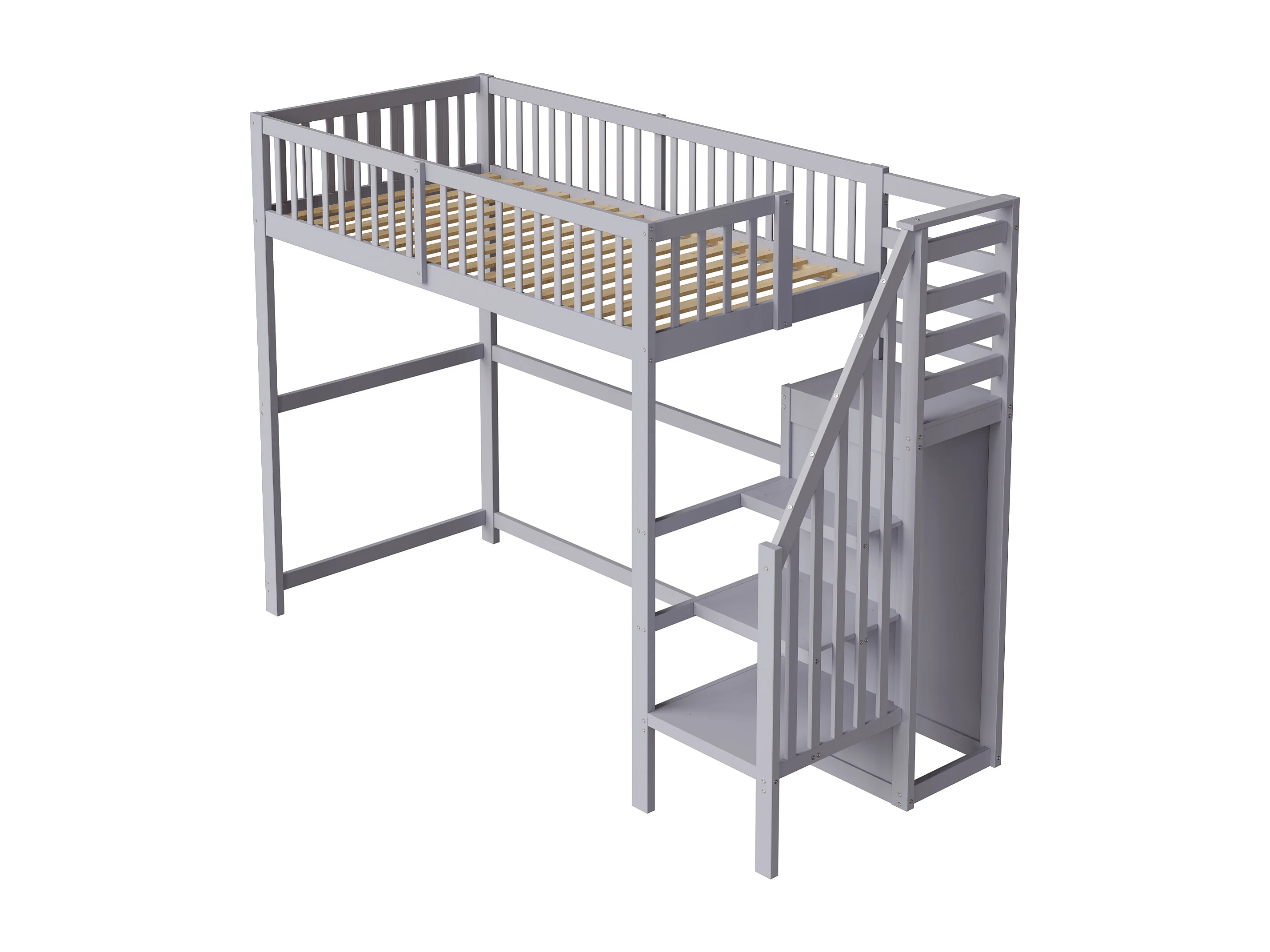Lit mezzanine 90x200cm en bois - avec une armoire - Gris